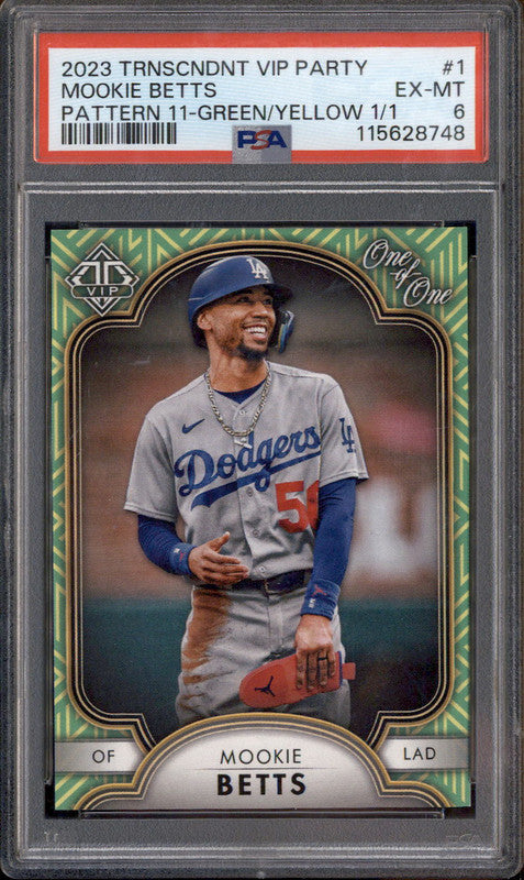 2023 Topps Transcendent VIP Party Pattern 11 Green Yellow Mookie Betts 1/1 PSA 6