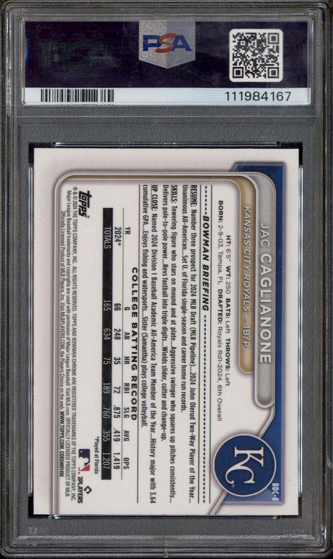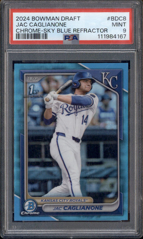 2024 Bowman Draft Chrome Sky Blue Refractor #BDC8 Jac Caglianone RC PSA 9
