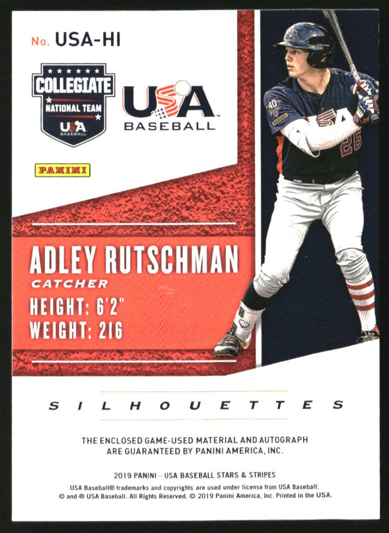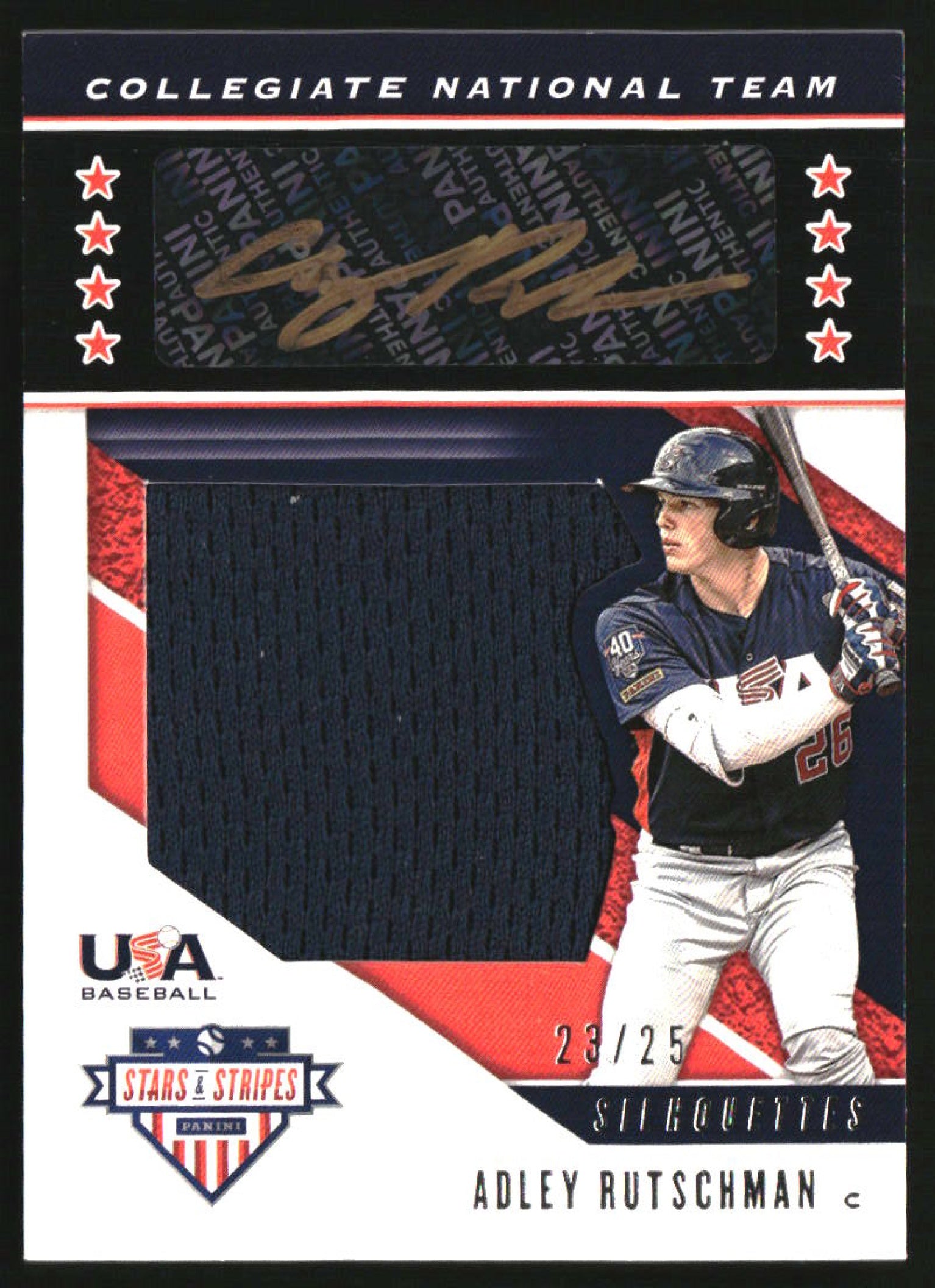 2019 USA Stars & Stripes Silhouettes Black Gold Jersey Adley Rutschman Auto /25
