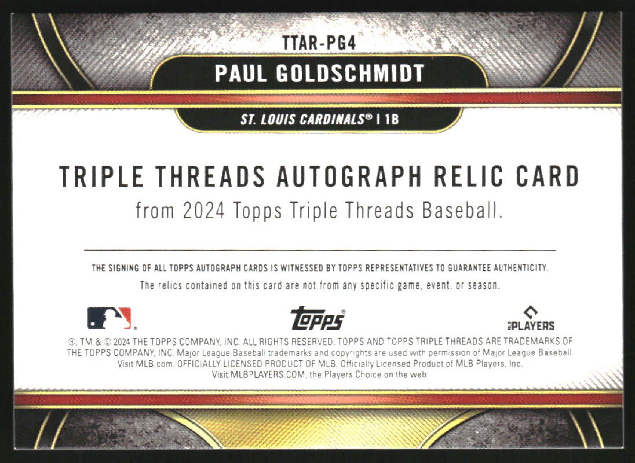 2024 Topps Triple Threads Autograph Relics #TTAR-PG4 Paul Goldschmidt Auto /36