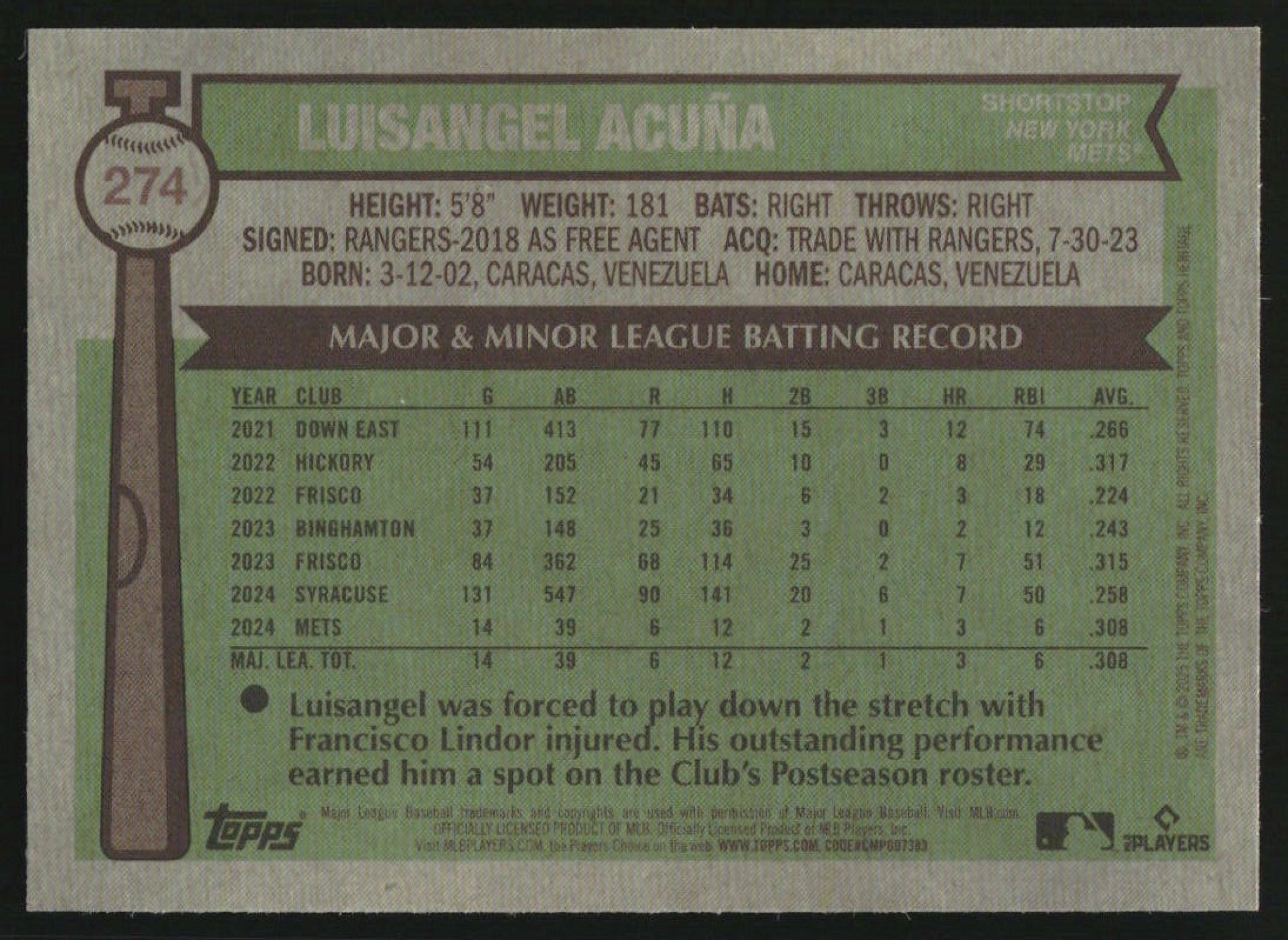 2025 Topps Heritage Chrome Black Refractor #274 Luisangel Acuna RC /76