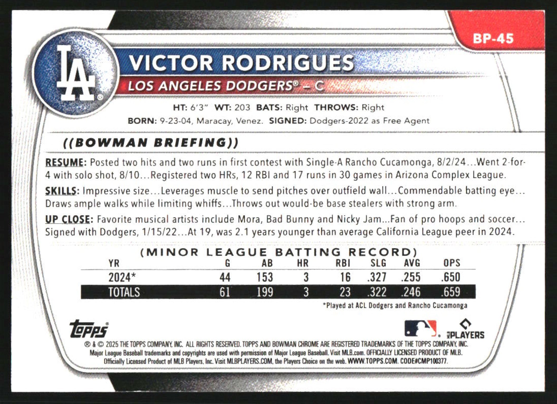 2025 Bowman Prospects Red Border #BP-45 Victor Rodrigues RC /5