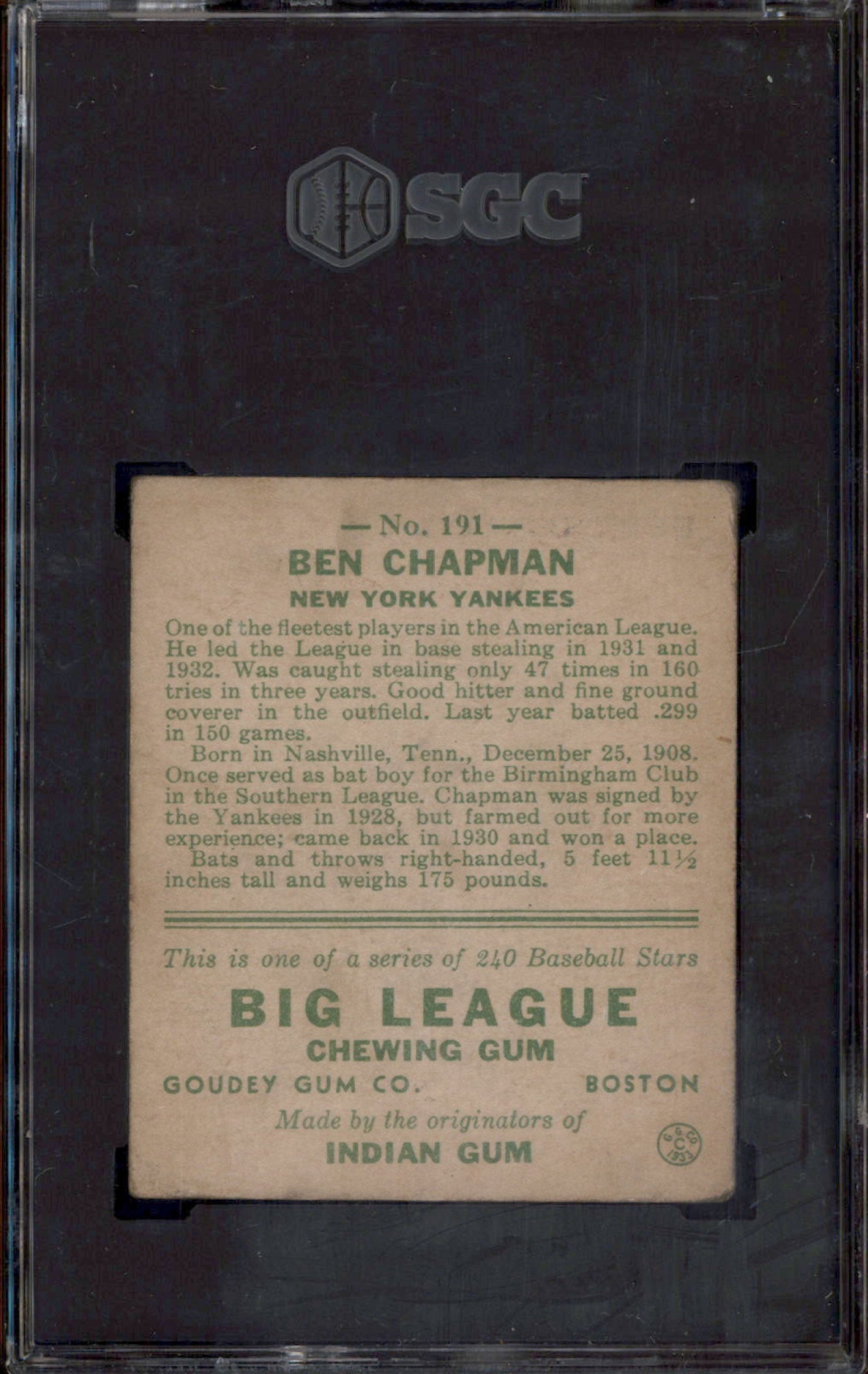 1933 Goudey #191 Ben Chapman SGC 4.5