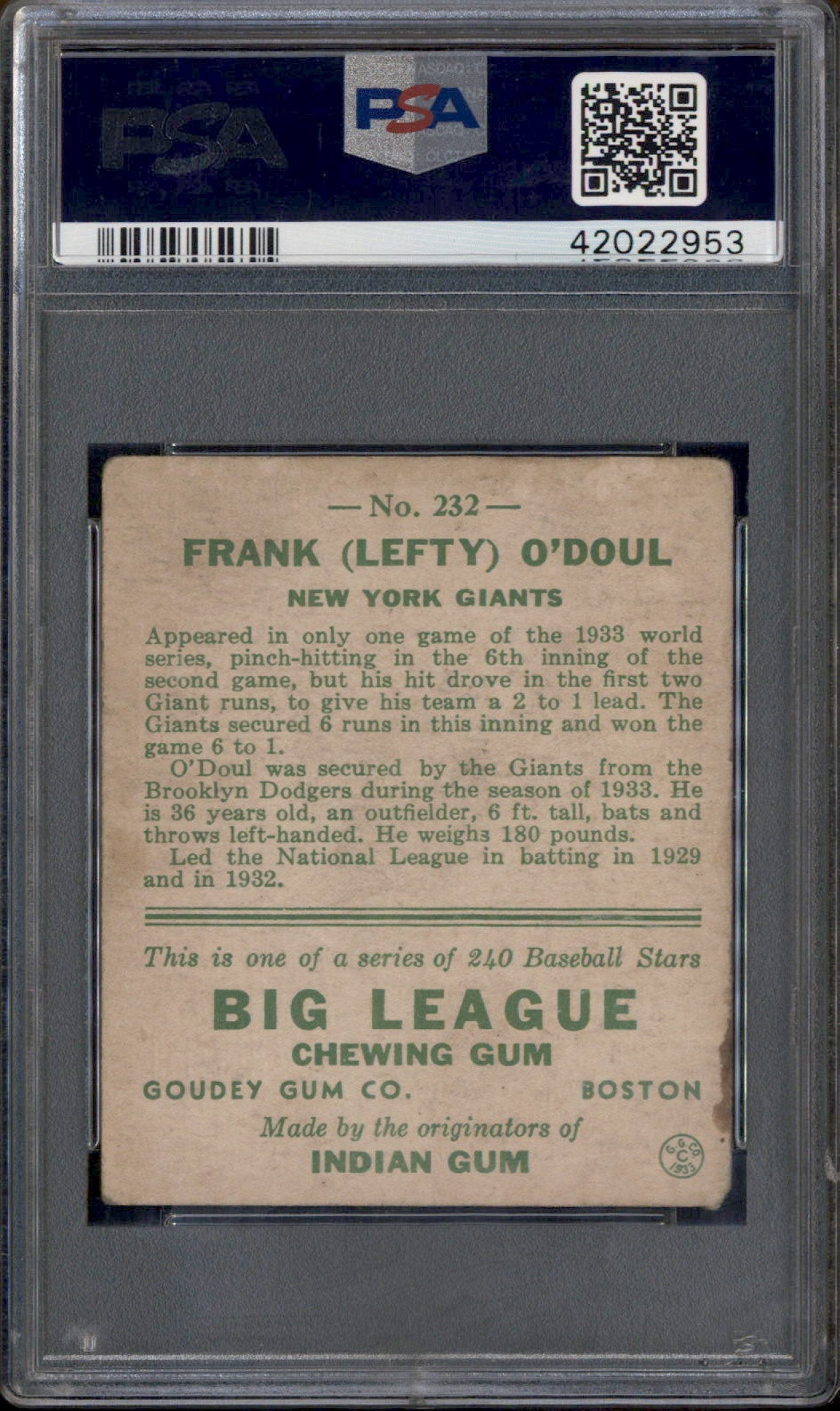 1933 Goudey #232 Lefty O'Doul PSA 2