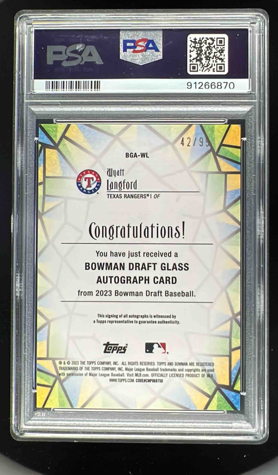 2023 Bowman Draft Bowman Glass Autographs #BGA-WL Wyatt Langford Auto /99 PSA 10