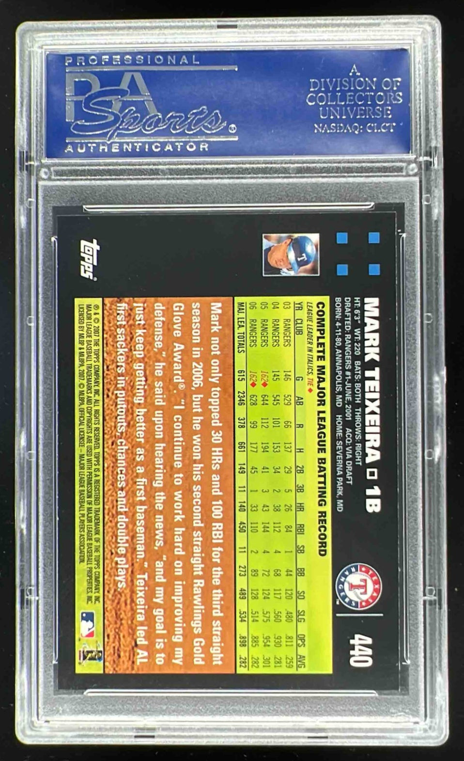 2007 Topps #440 Mark Teixeira PSA 10