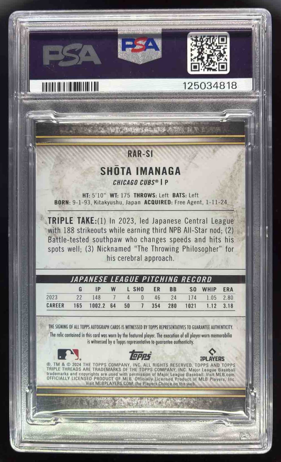 2024 Topps Triple Threads Rookie Relics Wood Shota Imanaga RC Auto 1/1 PSA 7