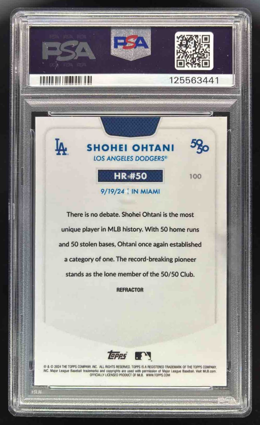 2024 Topps 50/50: Shohei Ohtani Chrome Refractor #100 Shohei Ohtani PSA 9