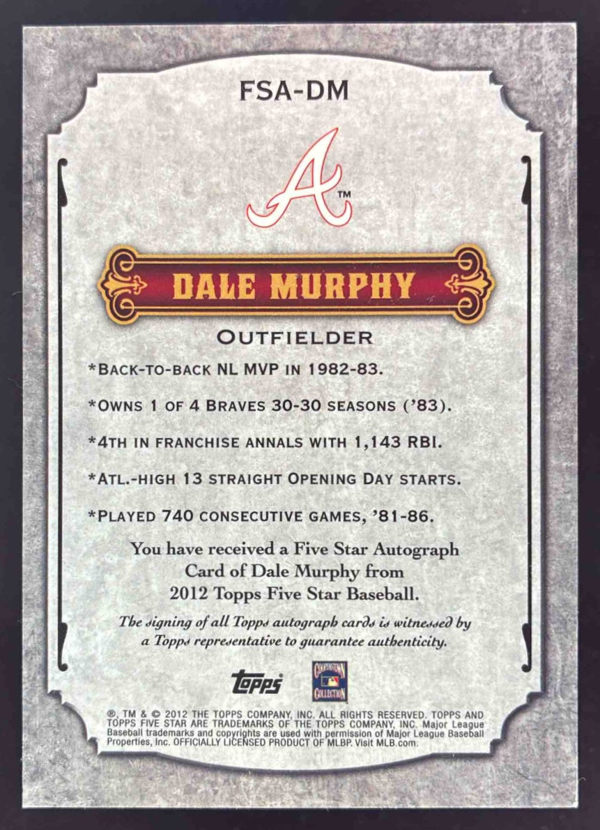 2012 Topps Five Star Retired Autographs #FSA-DM Dale Murphy Auto /208