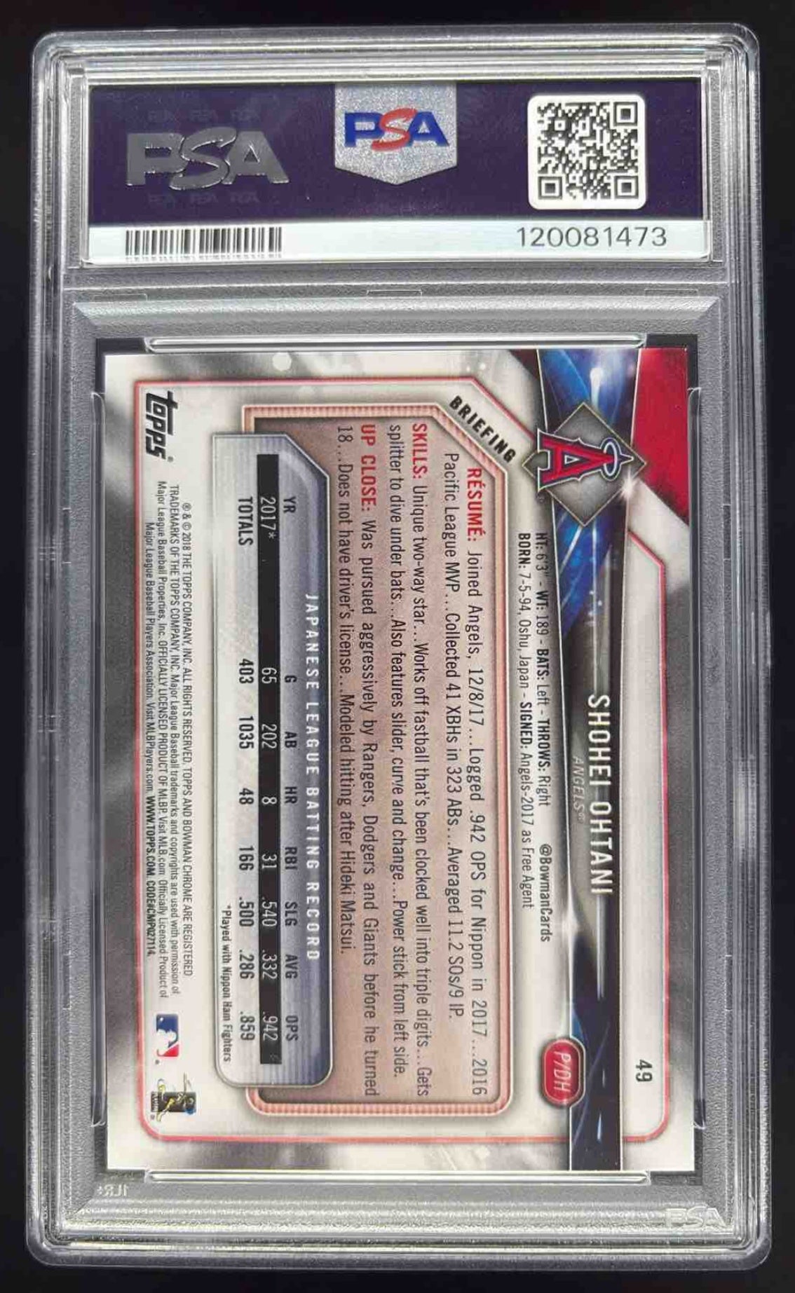 2018 Bowman #49 Shohei Ohtani RC PSA 8