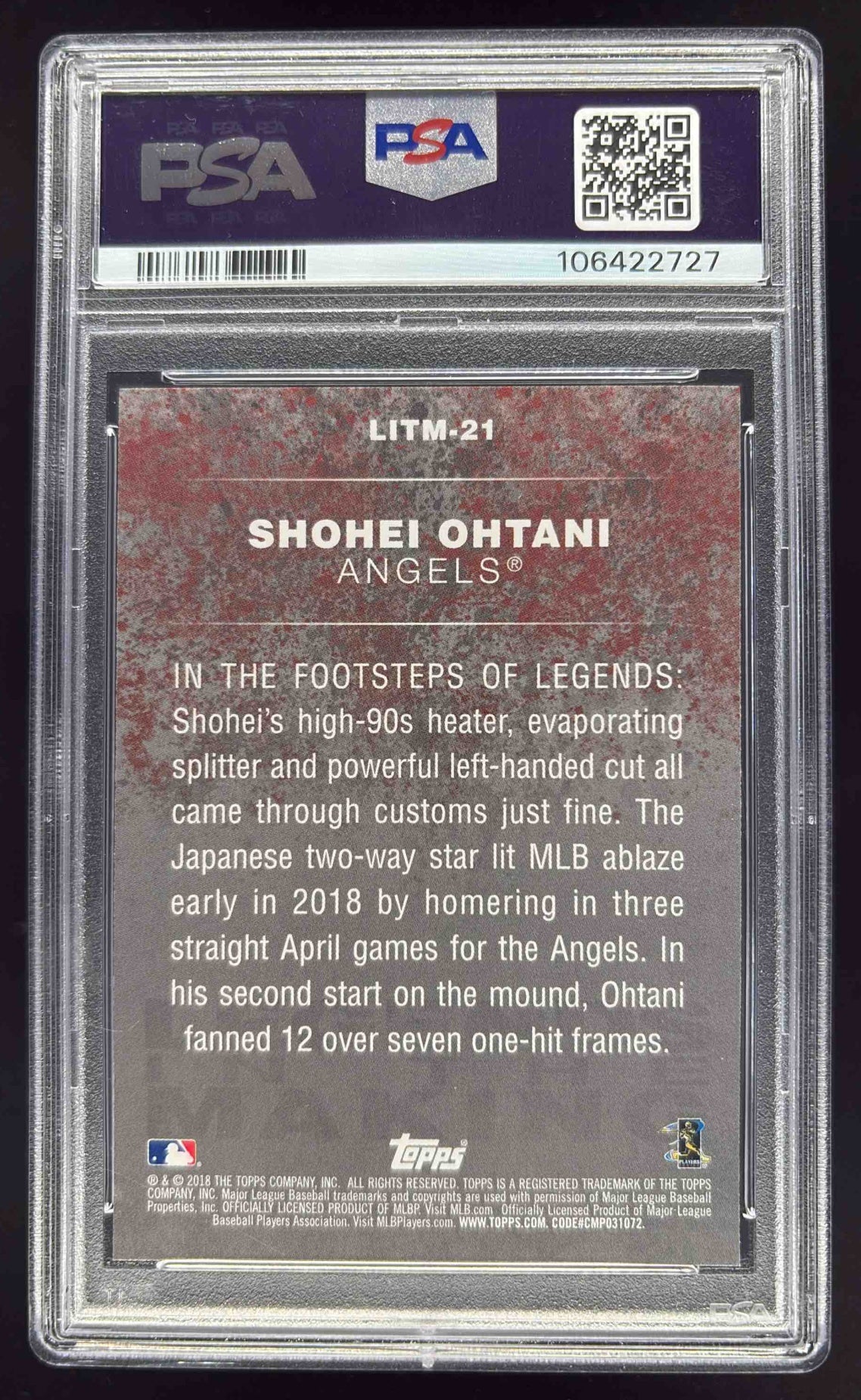 2018 Topps Update Legends in the Making #LITM-21 Shohei Ohtani RC PSA 10