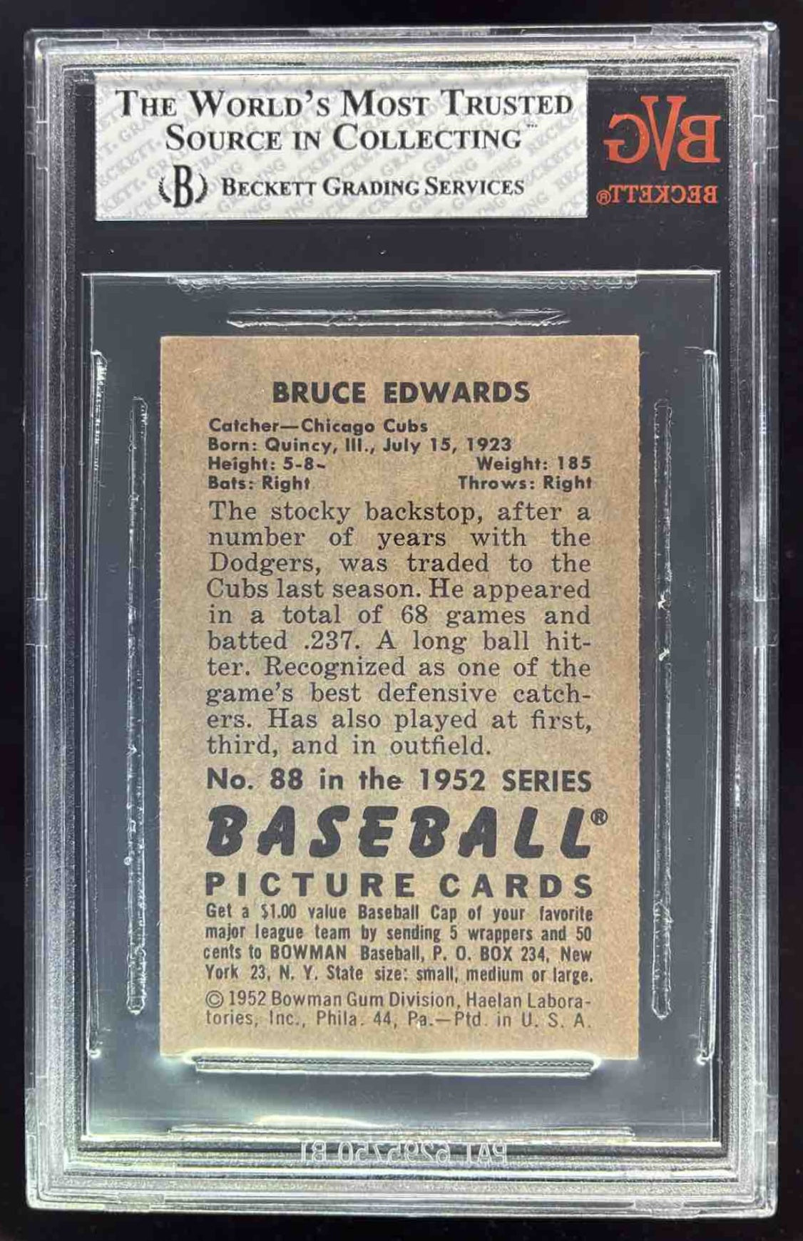 1952 Bowman #88 Bruce Edwards BGS 8