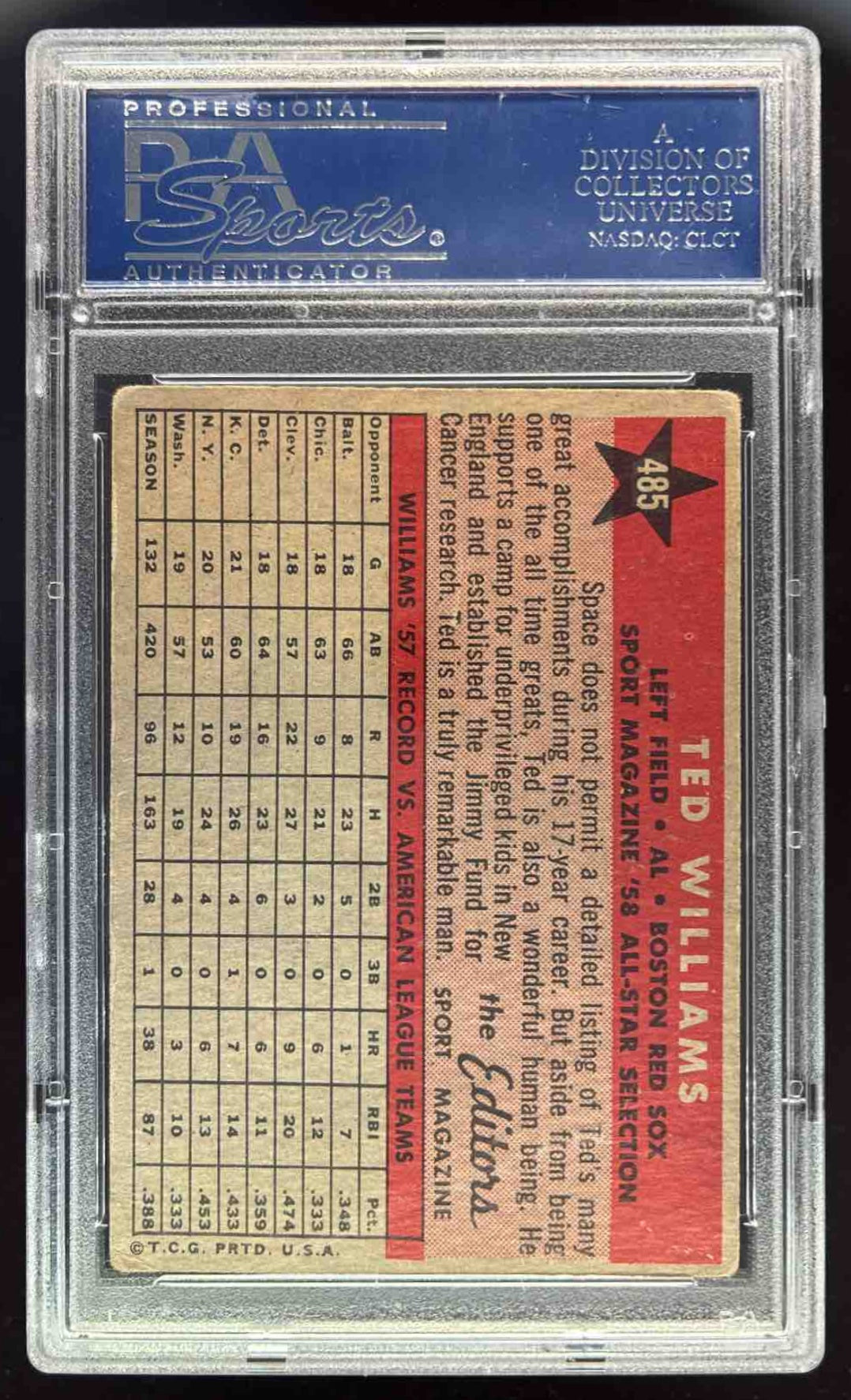 1958 Topps #485 Ted Williams PSA 3