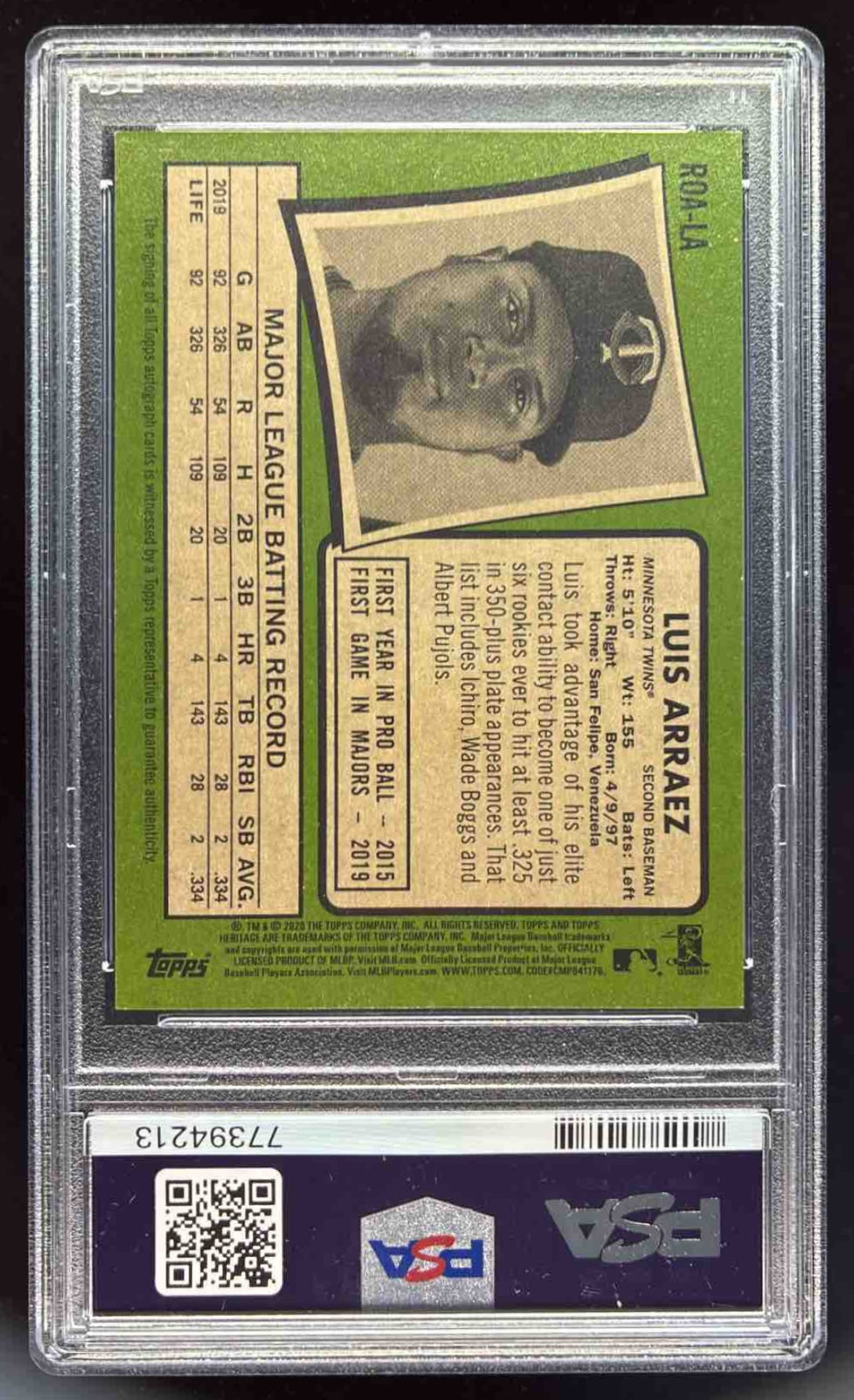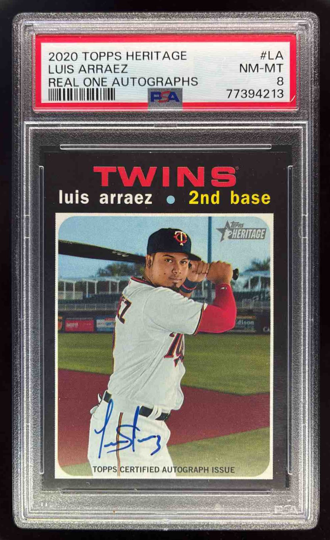 2020 Topps Heritage Real One Autographs High Number Luis Arraez RC Auto PSA 8