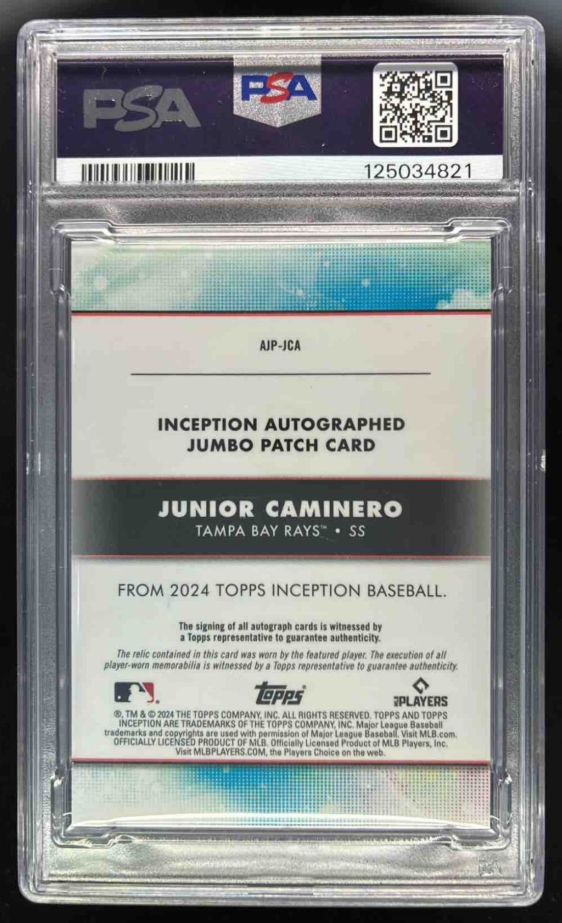 2024 Topps Inception Jumbo Patch Cards #JCA Junior Caminero RC Auto /125 PSA 9