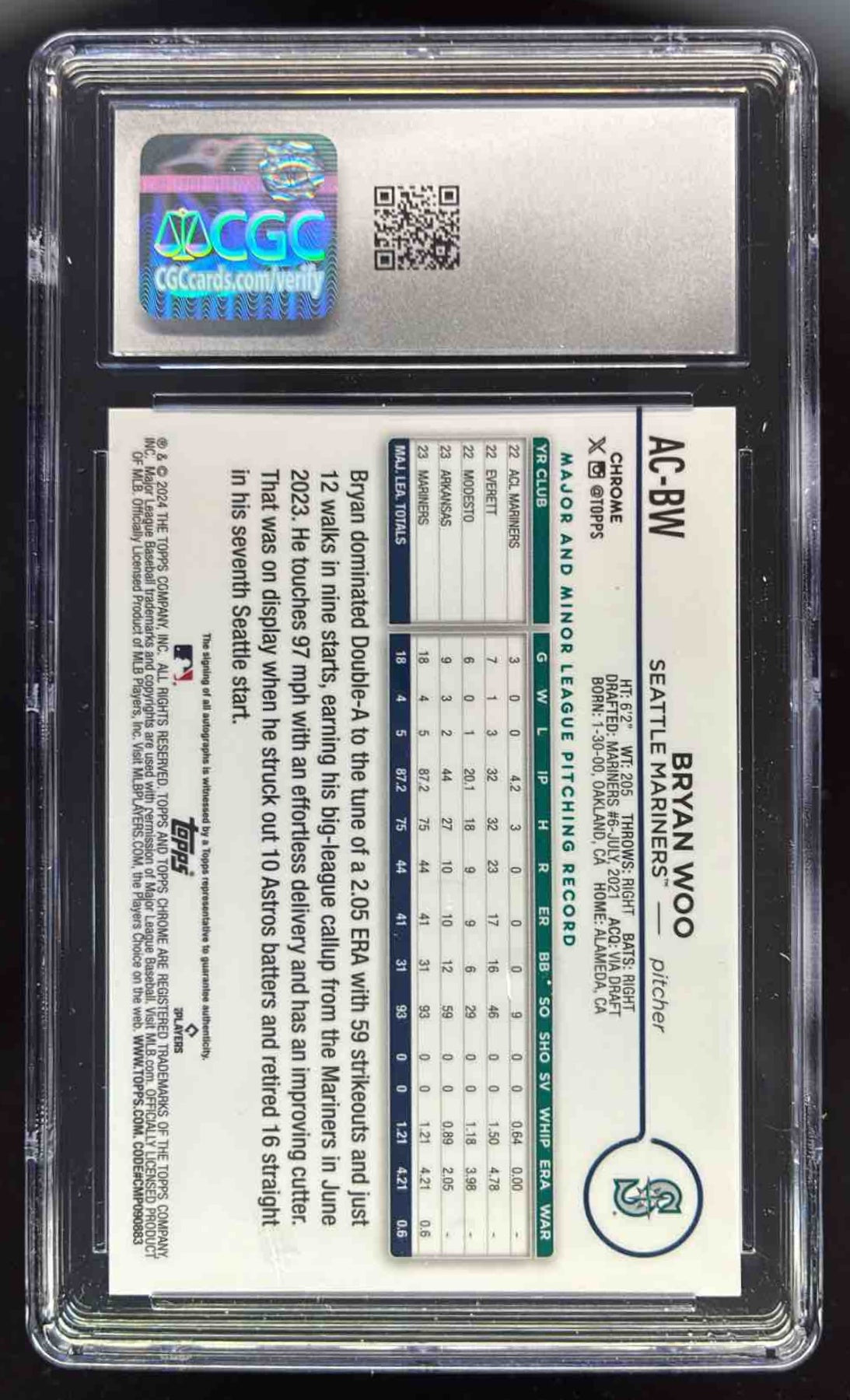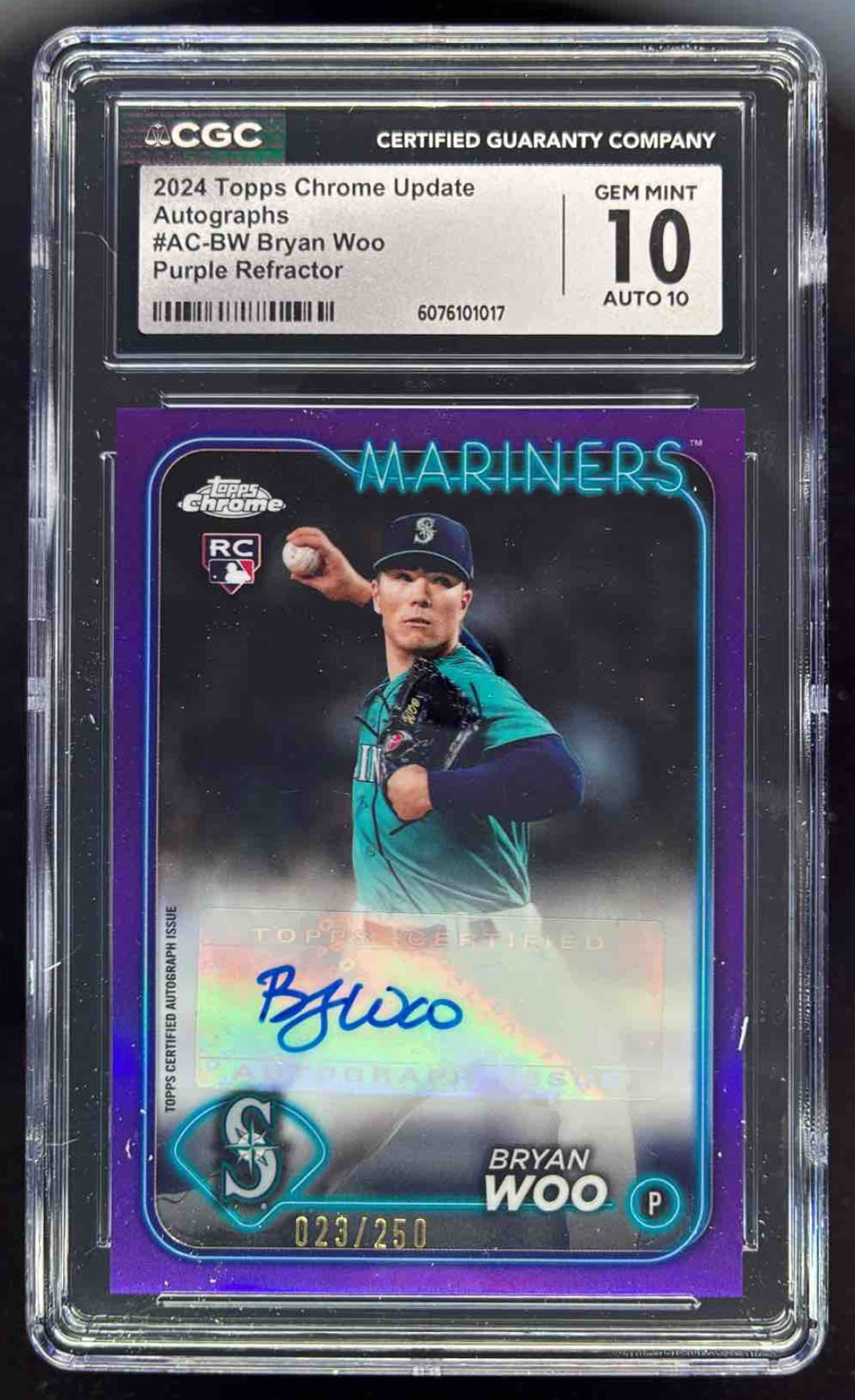 2024 Topps Chrome Update Purple Refractor Bryan Woo RC Auto /250 CGC 10