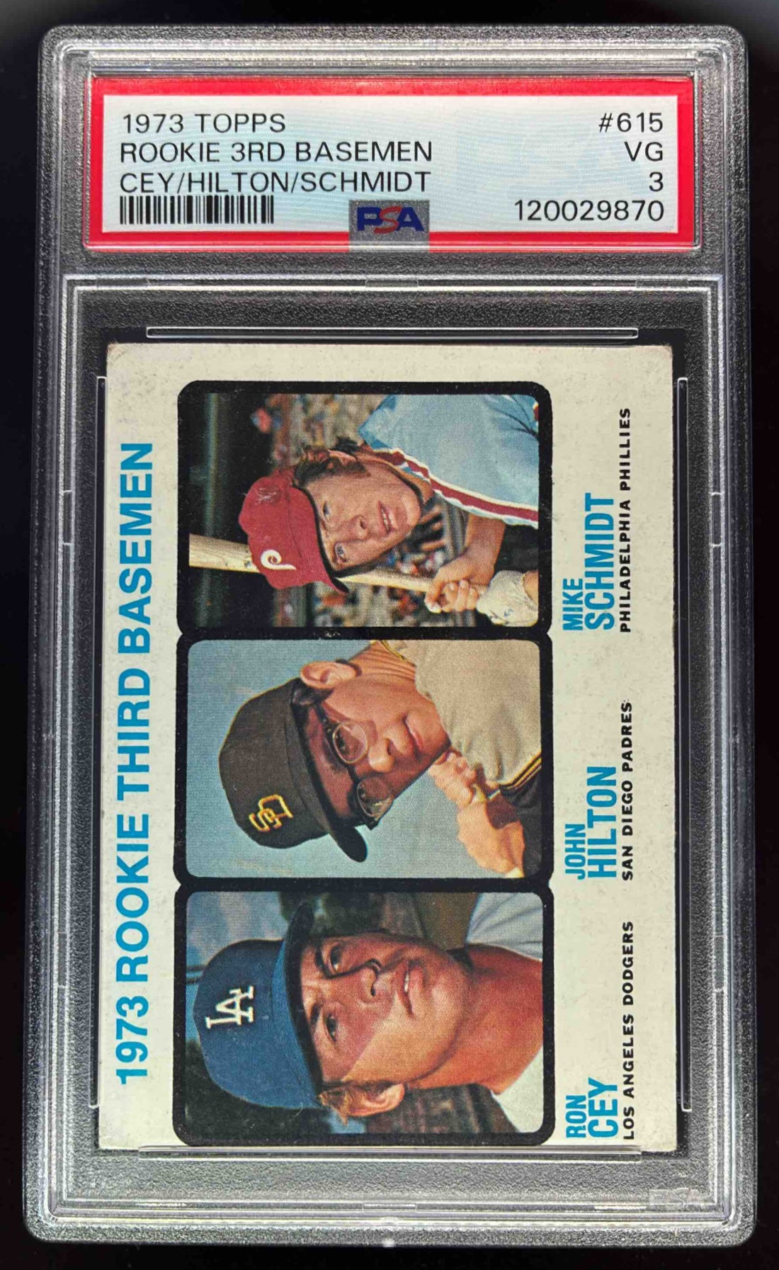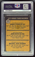 1973 Topps #615 1973 Rookie Basemen Ron Cey John Hilton Mike Schmidt RC PSA 3