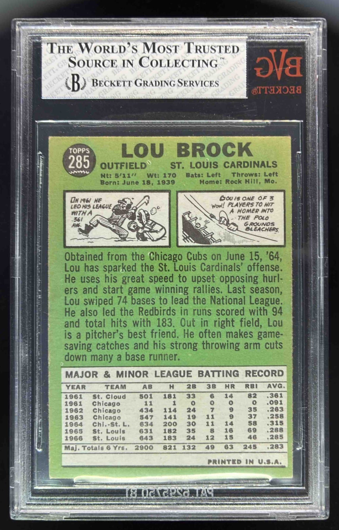 1967 Topps #285 Lou Brock BGS 5