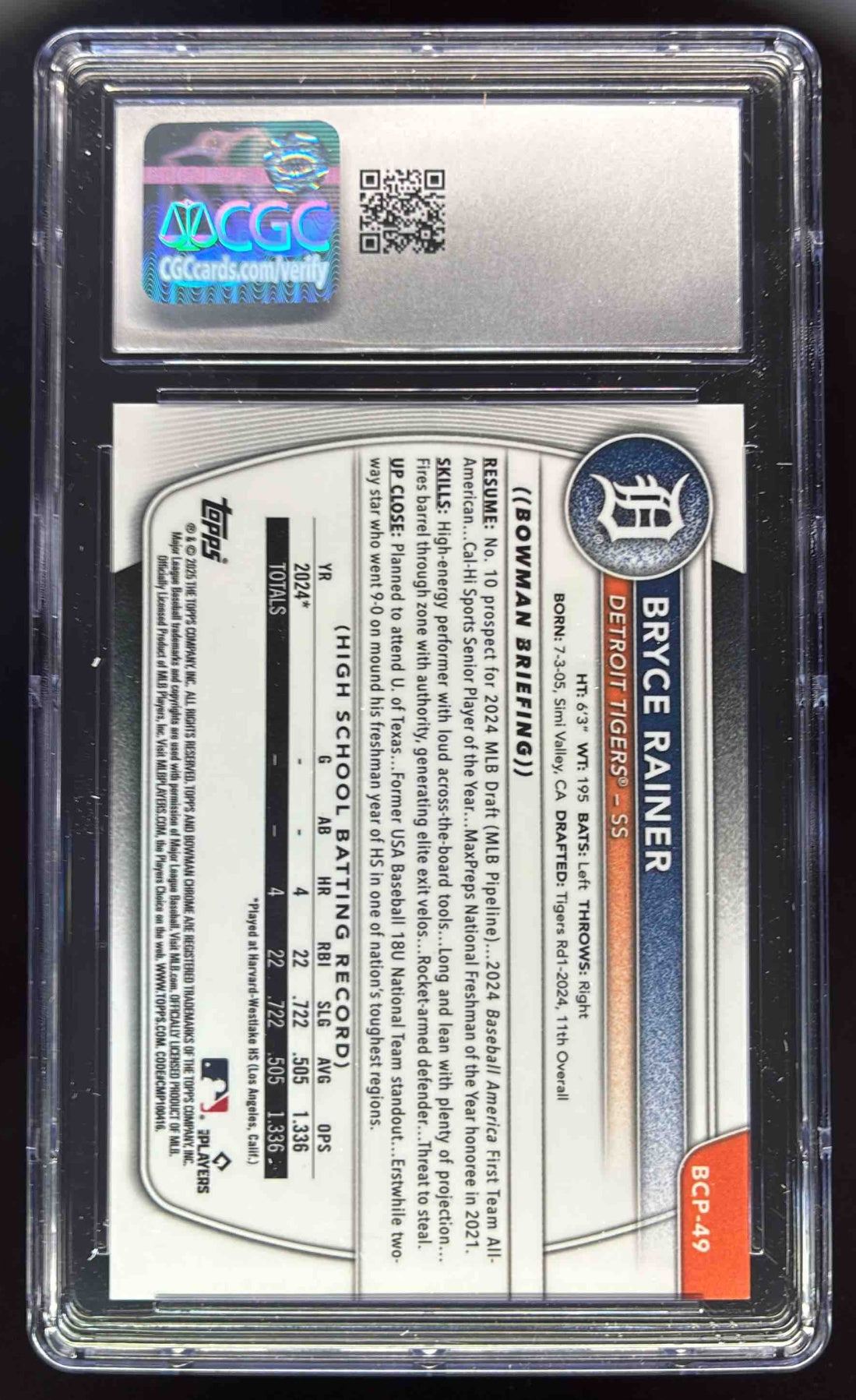 2025 Bowman Chrome Orange Shimmer Refractor #BCP-49 Bryce Rainer /25 CGC 10
