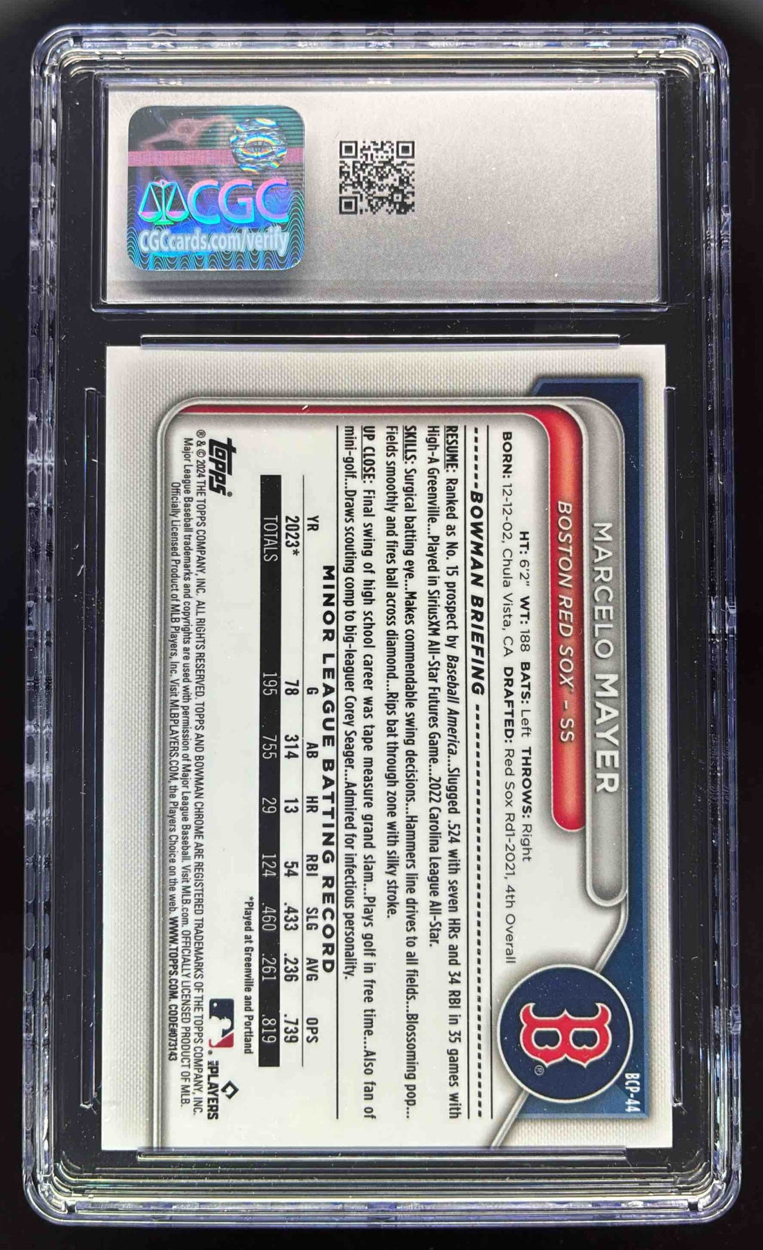 2024 Bowman Sapphire Chrome Gold Sapphire #BCP-44 Marcelo Mayer /50 CGC 10