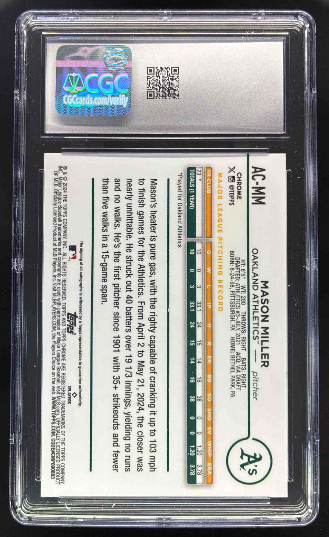 2024 Topps Chrome Update Aqua Wave Refractor #ACMM Mason Miller Auto /199 CGC 10