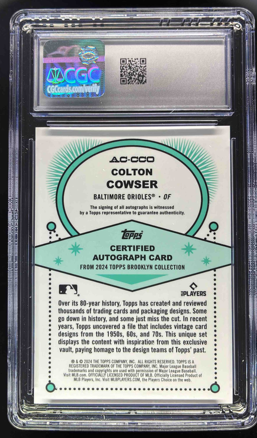 2024 Topps Brooklyn Collection Orange #AC-CCO Colton Cowser RC Auto /25 CGC 10
