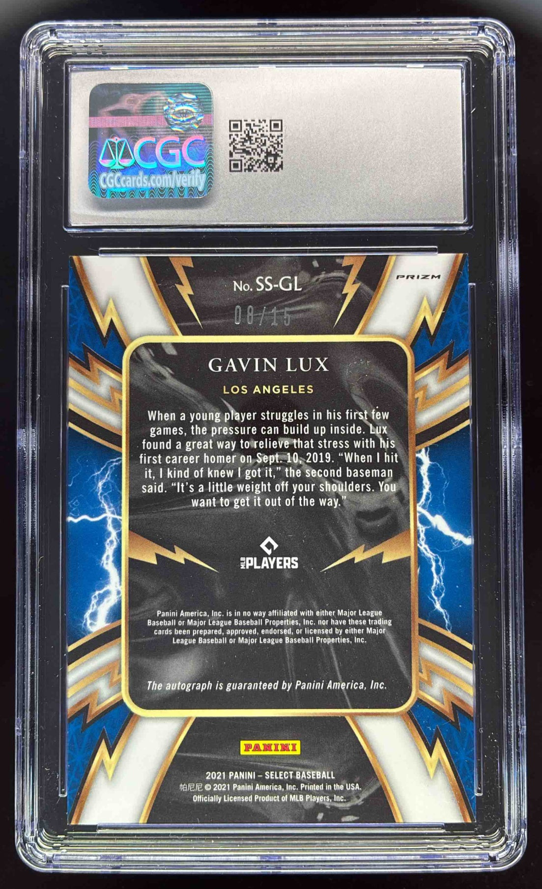 2021 Select Sparks Cracked Ice Prizm #SS-GL Gavin Lux Autograph Auto /15 CGC 10