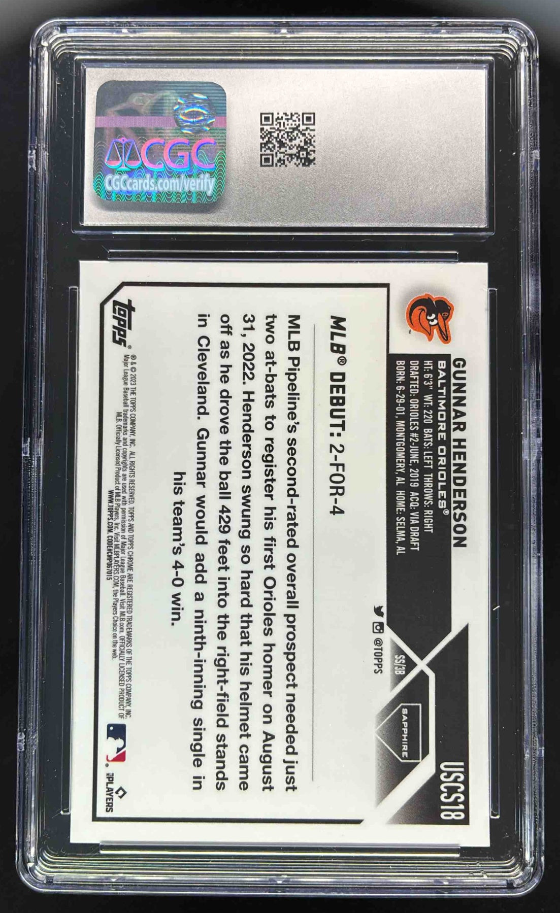 2023 Topps Chrome Update Sapphire Chrome #USCS18 Gunnar Henderson RC CGC 10