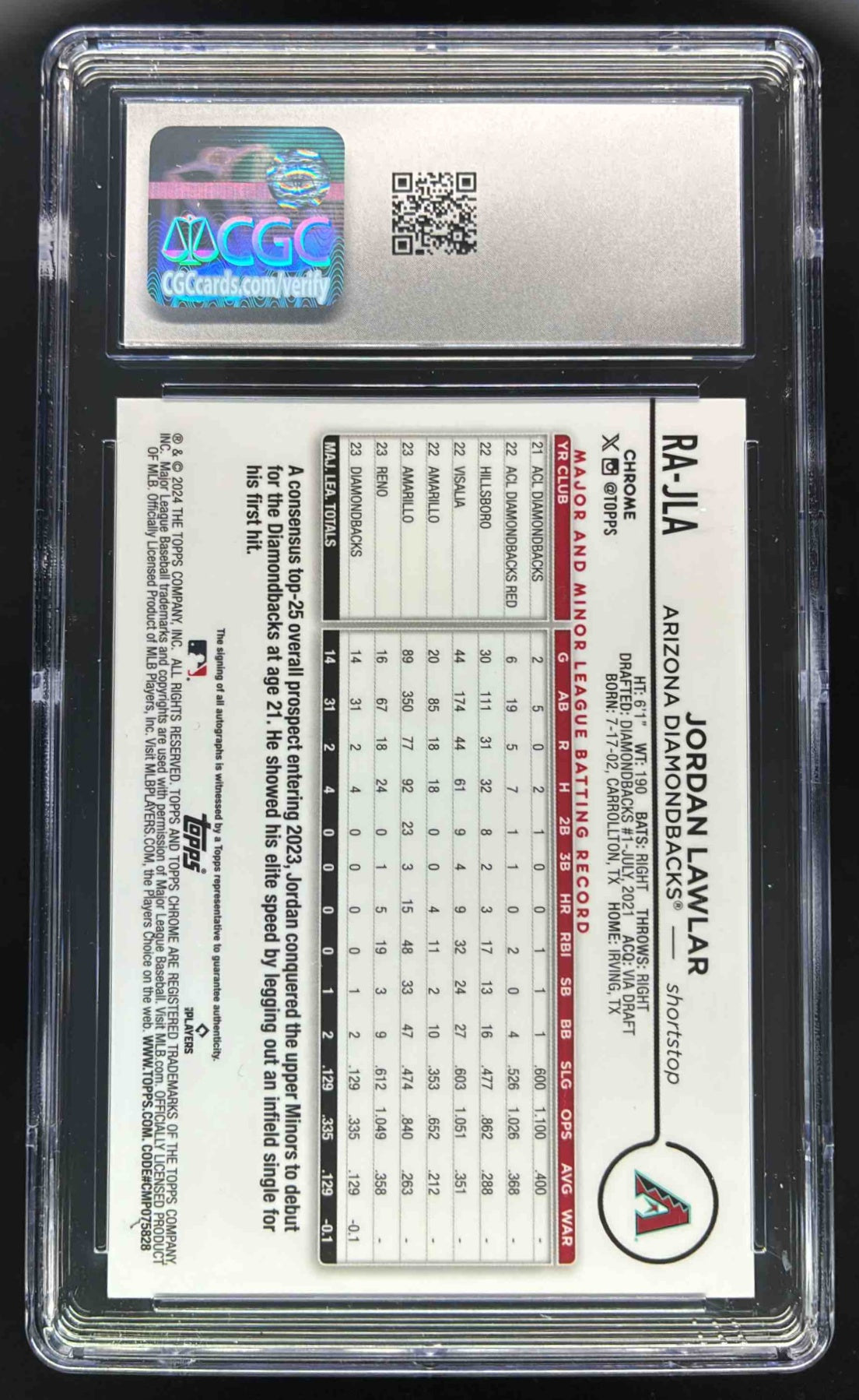 2024 Topps Chrome Rookie Purple Speckle #RAJLA Jordan Lawlar RC Auto /299 CGC 10
