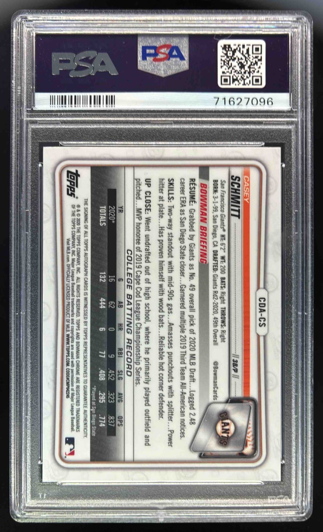 2020 Bowman Draft Chrome Pick Autographs #CDA-CS Casey Schmitt Auto PSA 9
