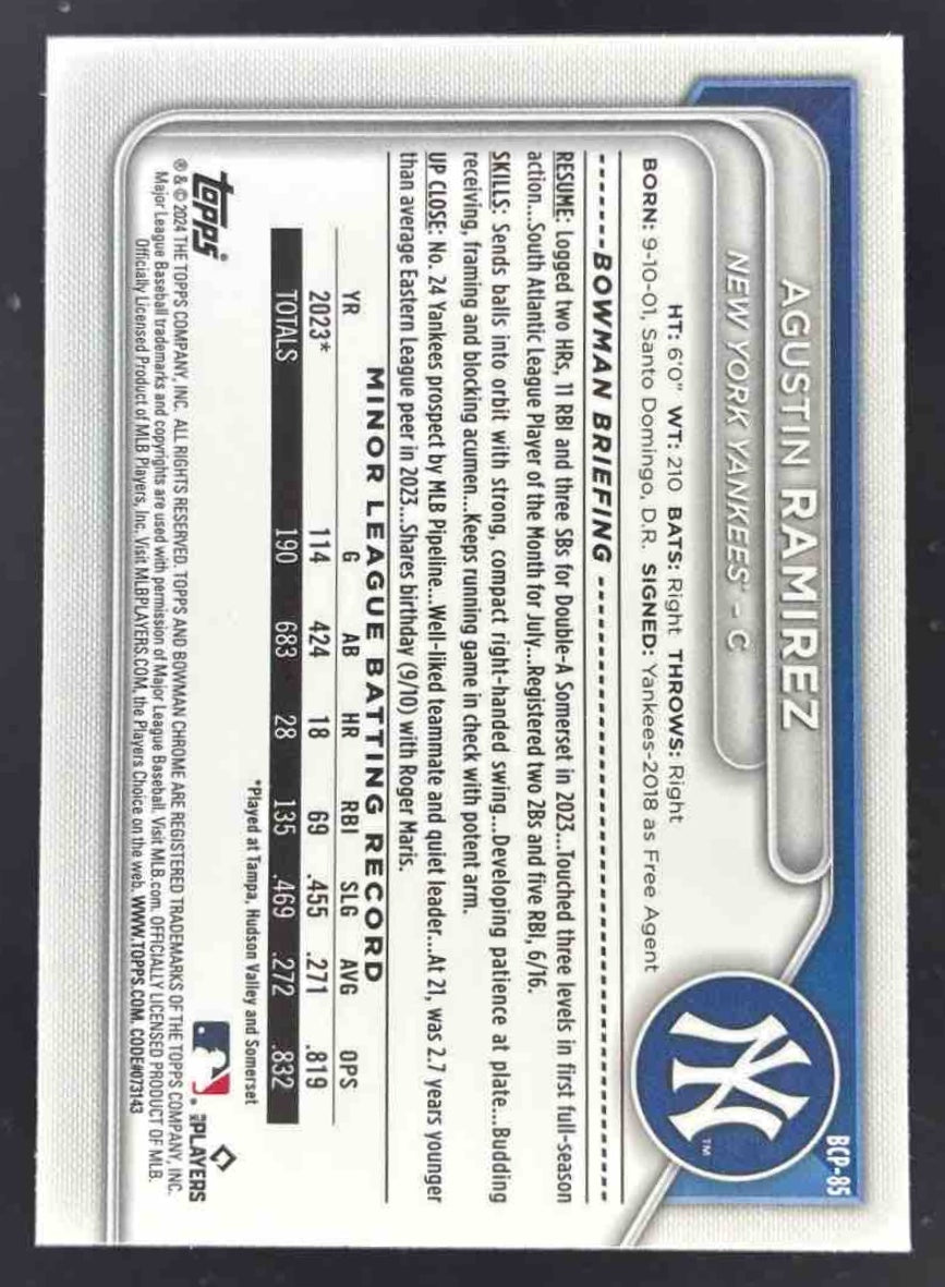 2024 Bowman Chrome Prospects Orange Shimmer Refractors Agustin Ramirez RC /25