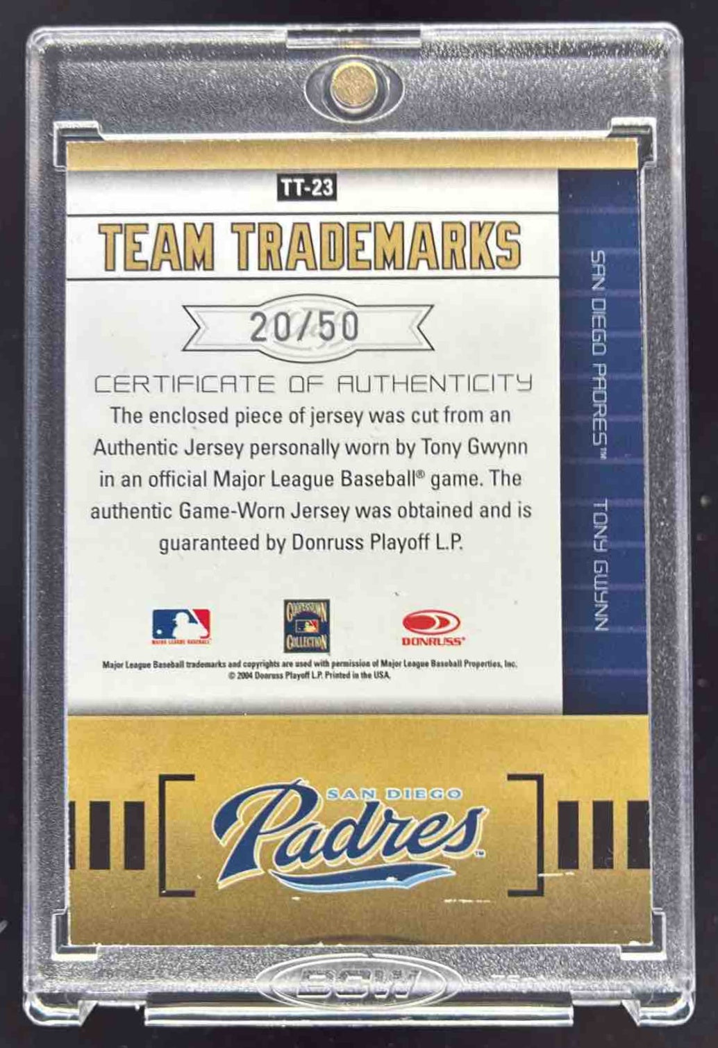 2004 Leaf Limited Team Trademarks Jersey Number #TT-23 Tony Gwynn Auto /50