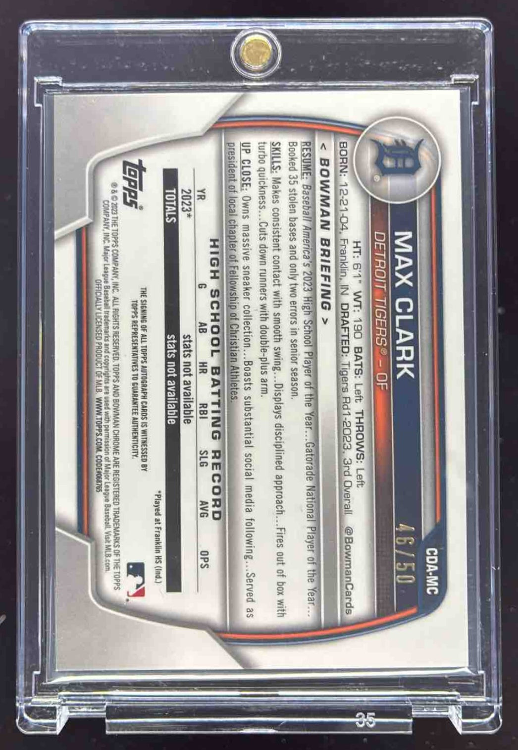 2023 Bowman Draft Sapphire Chrome Gold Refractor #CDA-MC Max Clark RC Auto /50