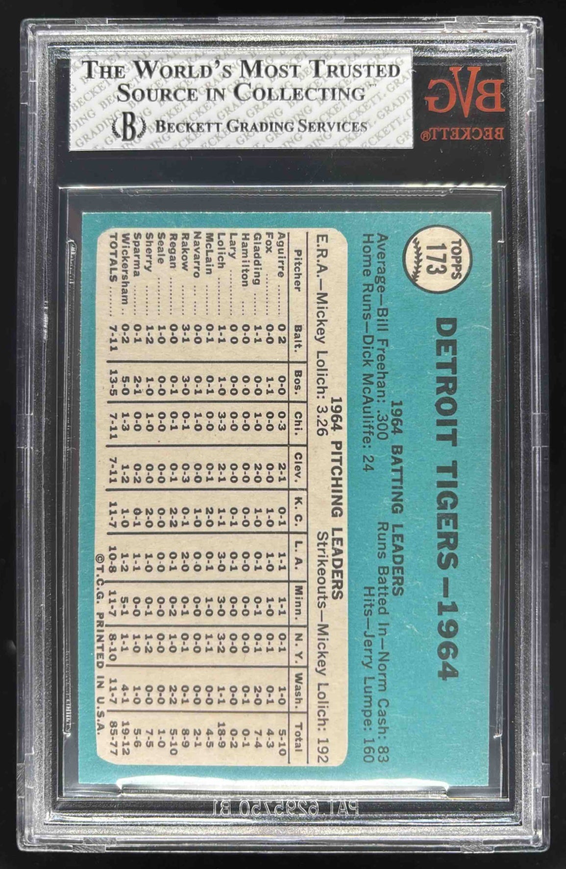 1965 Topps #173 Detroit Tigers BGS 8