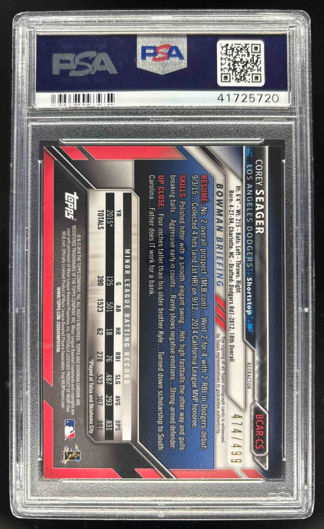 2016 Bowman Chrome Rookie Refractor #BCAR-CS Corey Seager RC Auto /499 PSA 10