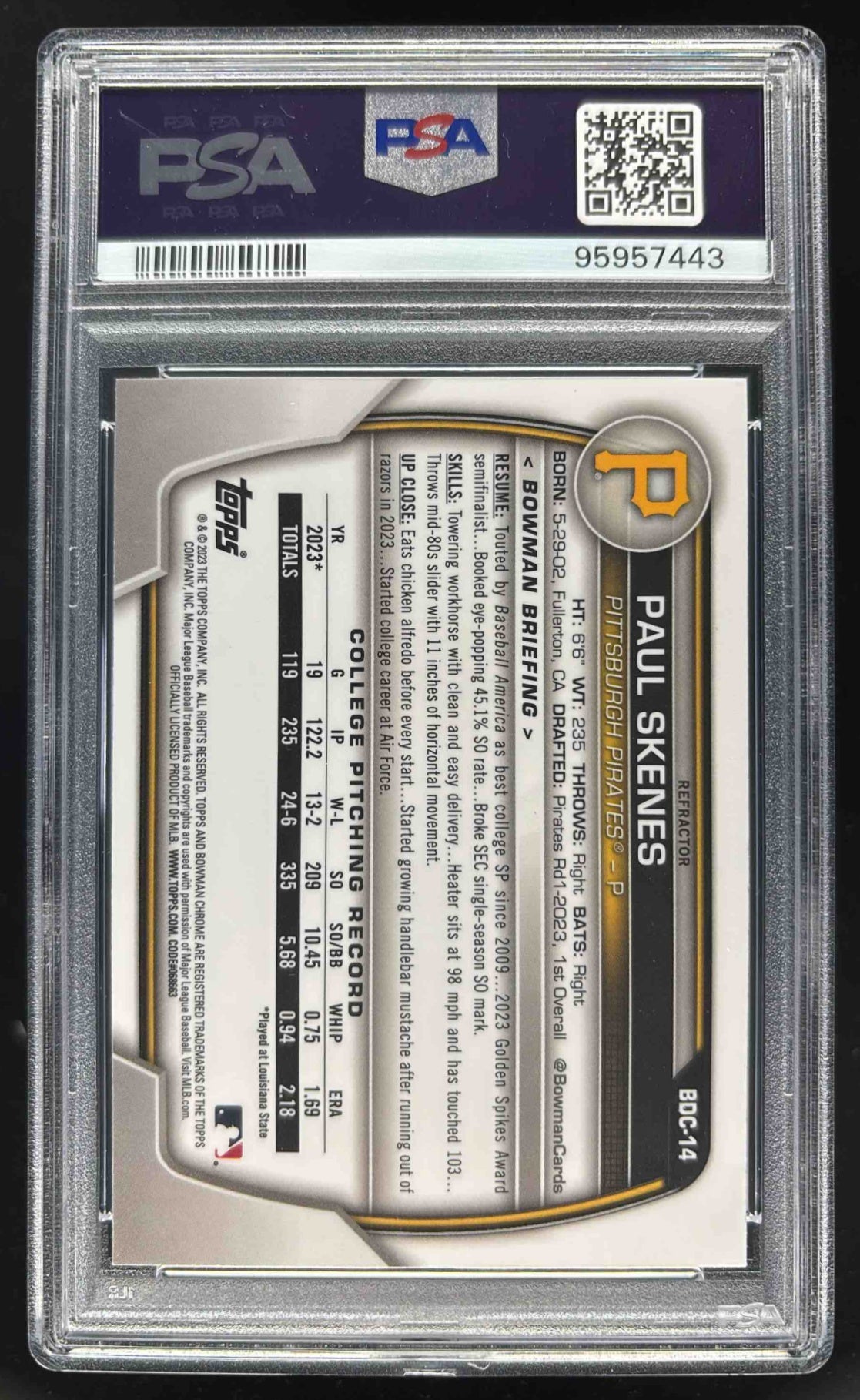 2023 Bowman Draft Chrome Refractor #BDC-14 Paul Skenes RC PSA 10