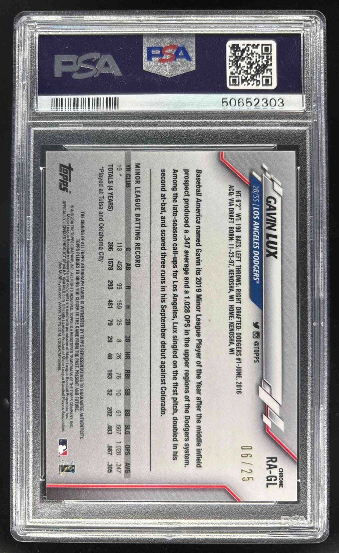 2020 Topps Chrome Rookie Orange Refractor #RA-GL Gavin Lux RC Auto /25 PSA 10