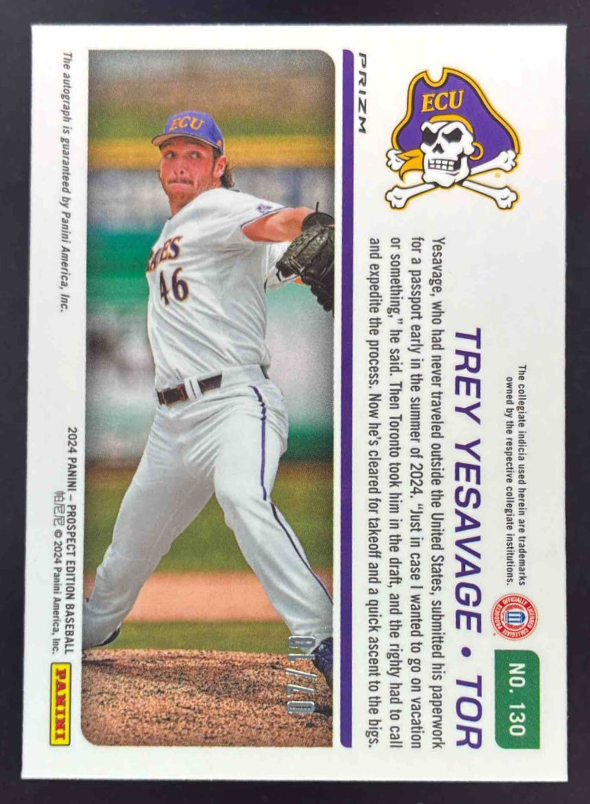 2024 Panini Edition Holo Prospect Ticket Gold Pulsar Trey Yesavage Auto /10