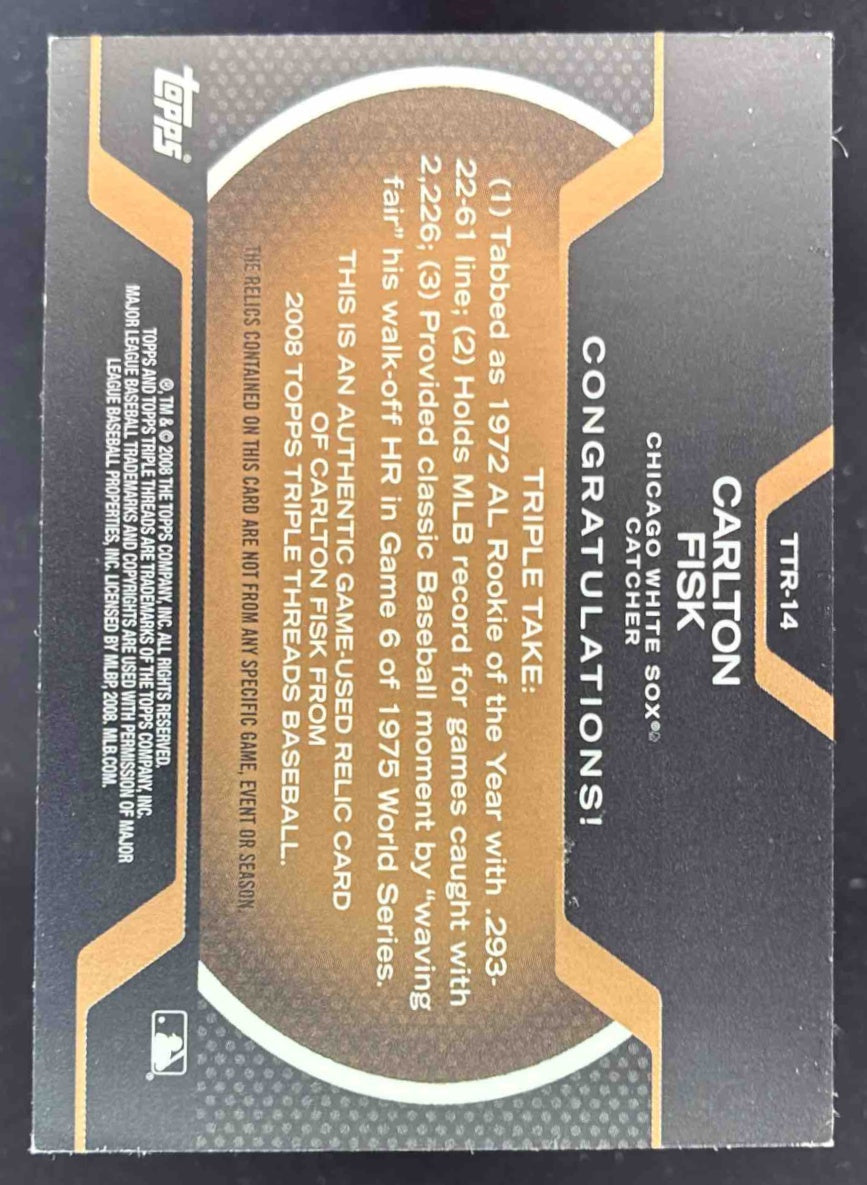 2008 Topps Triple Threads Relics Sepia #TTR-14 Carlton Fisk /27