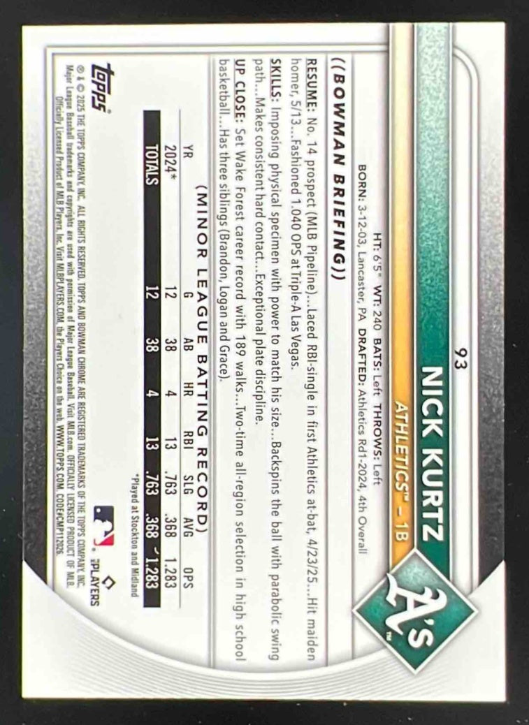 2025 Bowman Chrome Aqua Geometric Refractor #93 Nick Kurtz RC /125