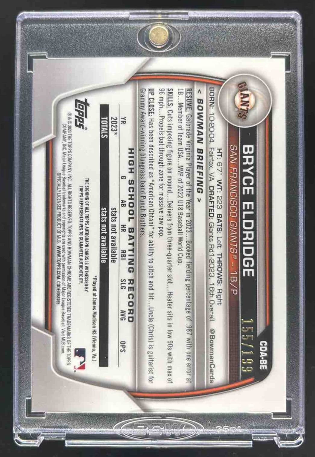 2023 Bowman Draft Chrome Aqua Lava Refractor #CDA-BE Bryce Eldridge RC Auto /199