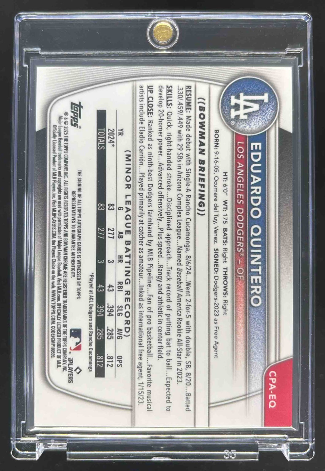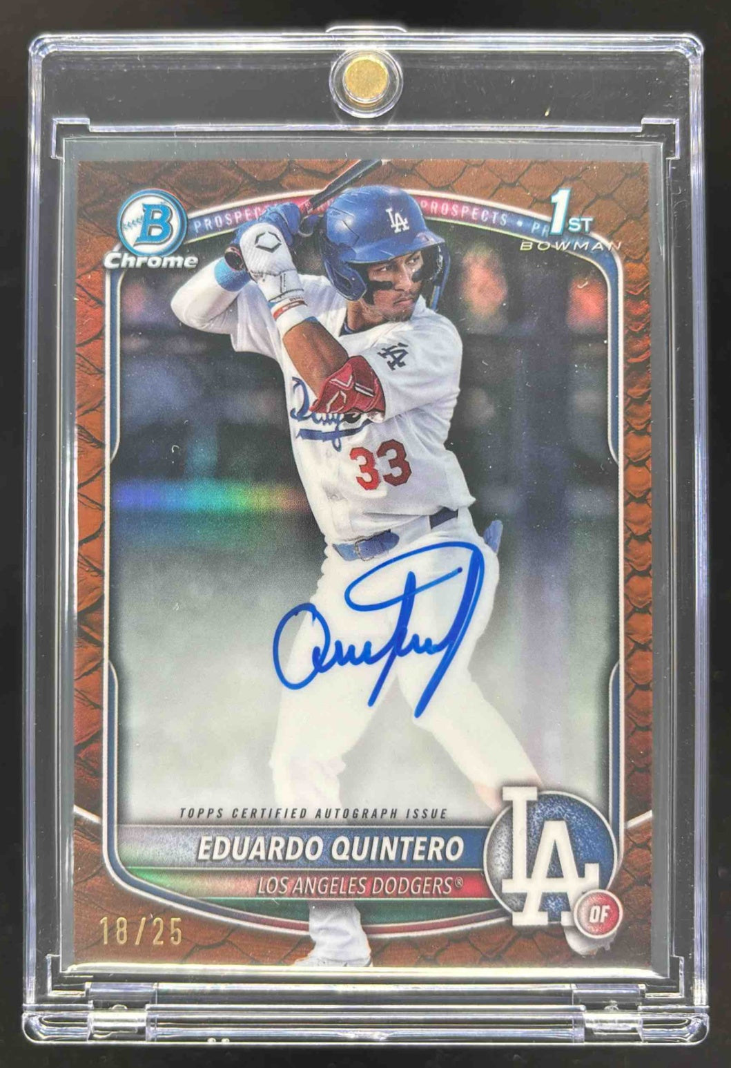 2025 Bowman Chrome Reptilian Orange Refractor #EQ Eduardo Quintero RC Auto /25