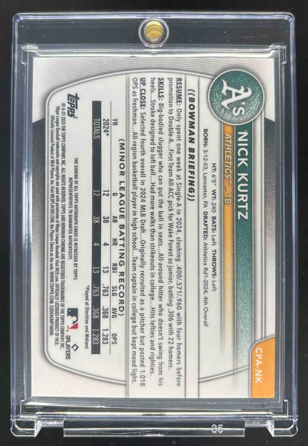 2025 Bowman Chrome Prospect HTA Choice Refractor #CPA-NK Nick Kurtz Auto /150