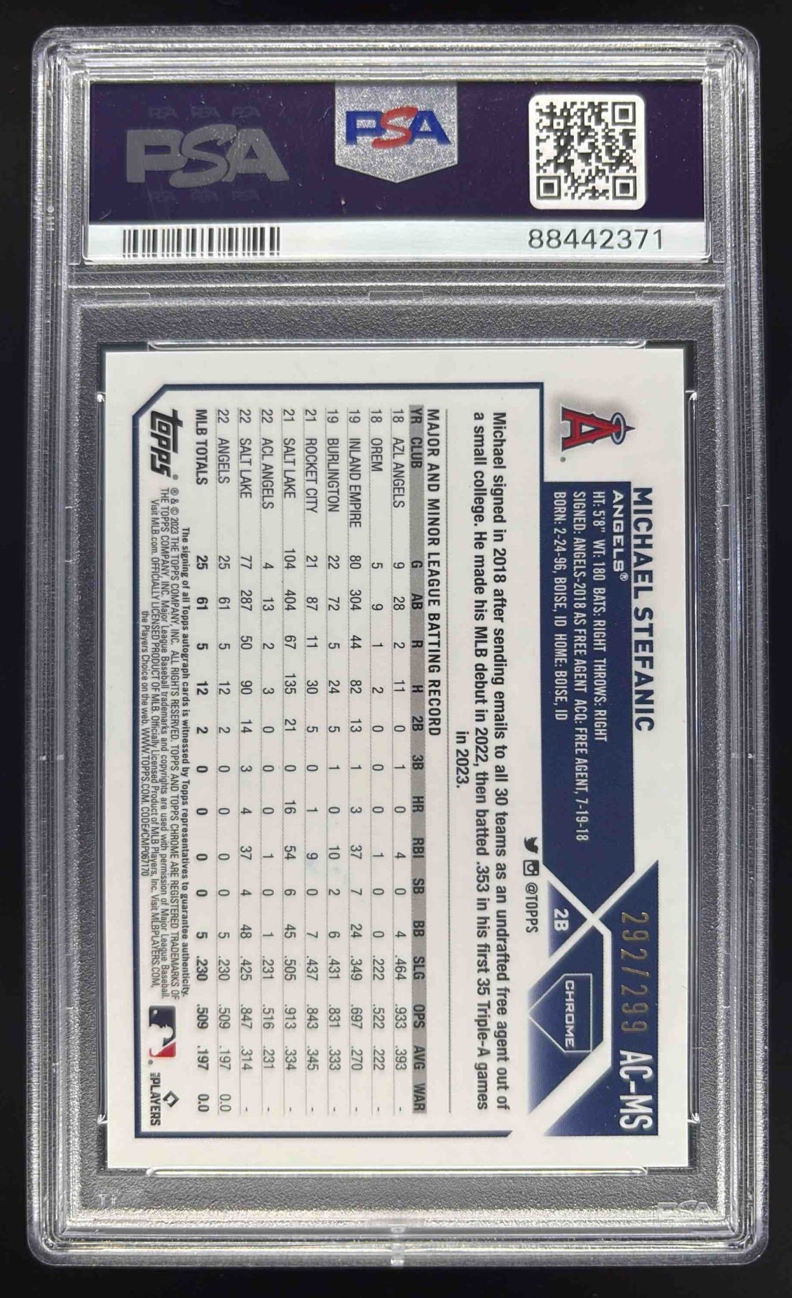 2023 Topps Chrome Purple Speckle Refractor Michael Stefanic RC Auto /299 PSA 10