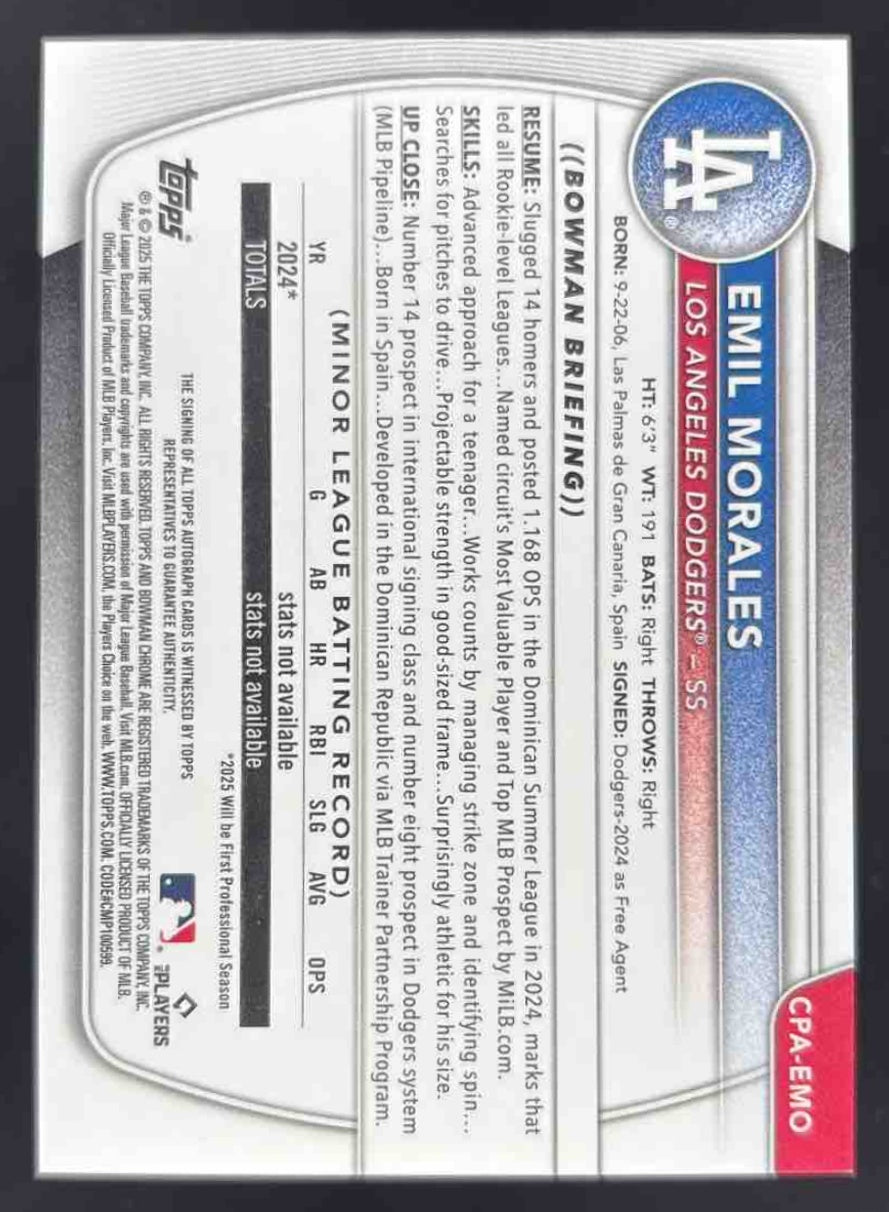 2025 Bowman Chrome Chrome HTA Choice Refractor #CPA-EMO Emil Morales Auto /150