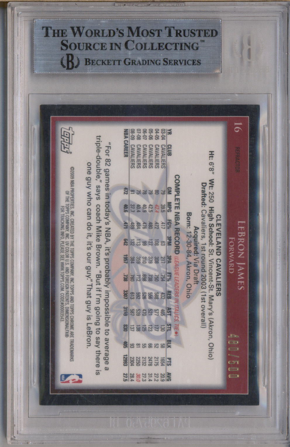 2009-10 Topps Chrome Refractors #16 Lebron James /500 BGS 8.5