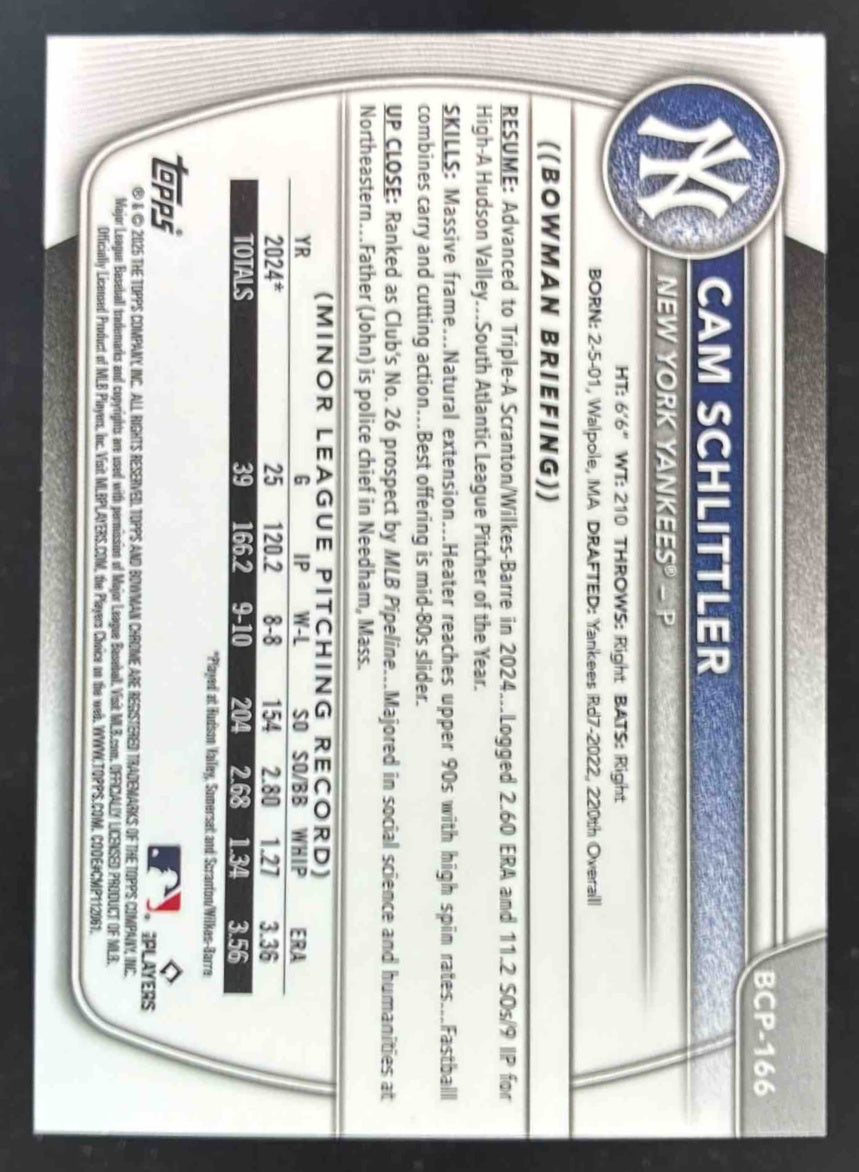 2025 Bowman Chrome Chrome Prospects #BCP-166 Cam Schlittler RC
