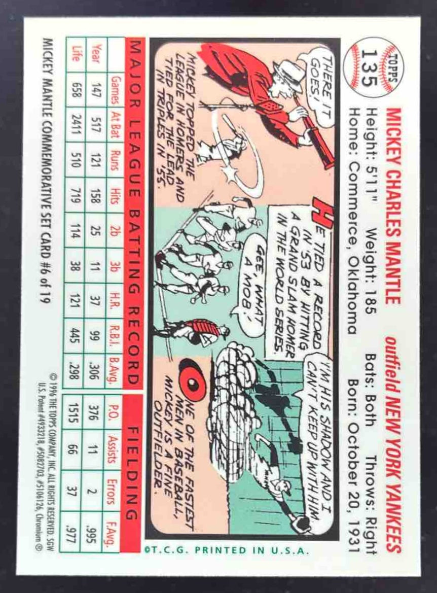 1996 Topps Mickey Mantle Commemorative Reprint Finest Refractor #6 Mickey Mantle