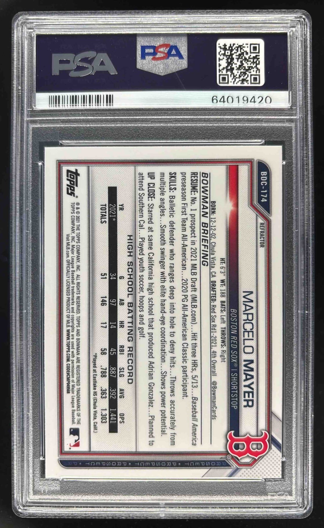 2021 Bowman Draft Chrome Refractor #BDC-174 Marcelo Mayer RC PSA 10