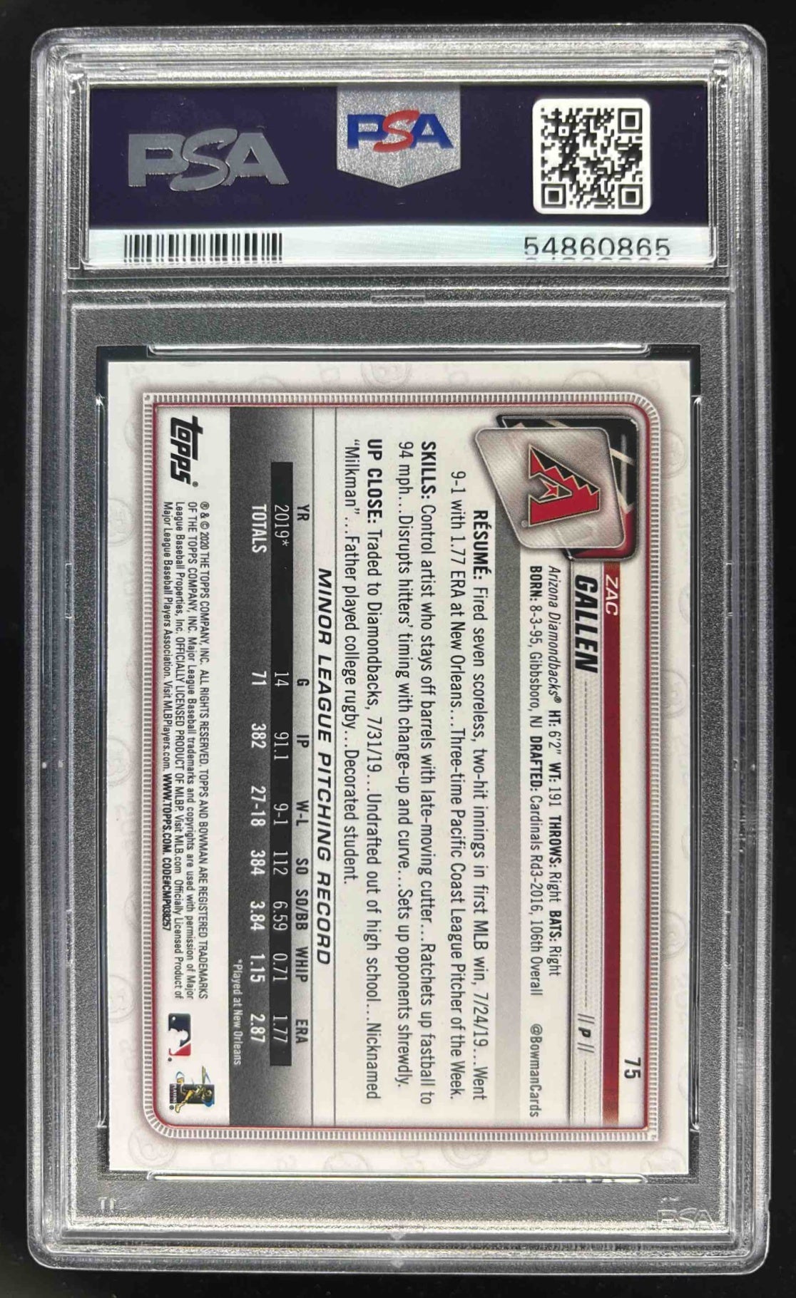 2020 Bowman #75 Zac Gallen RC PSA 10